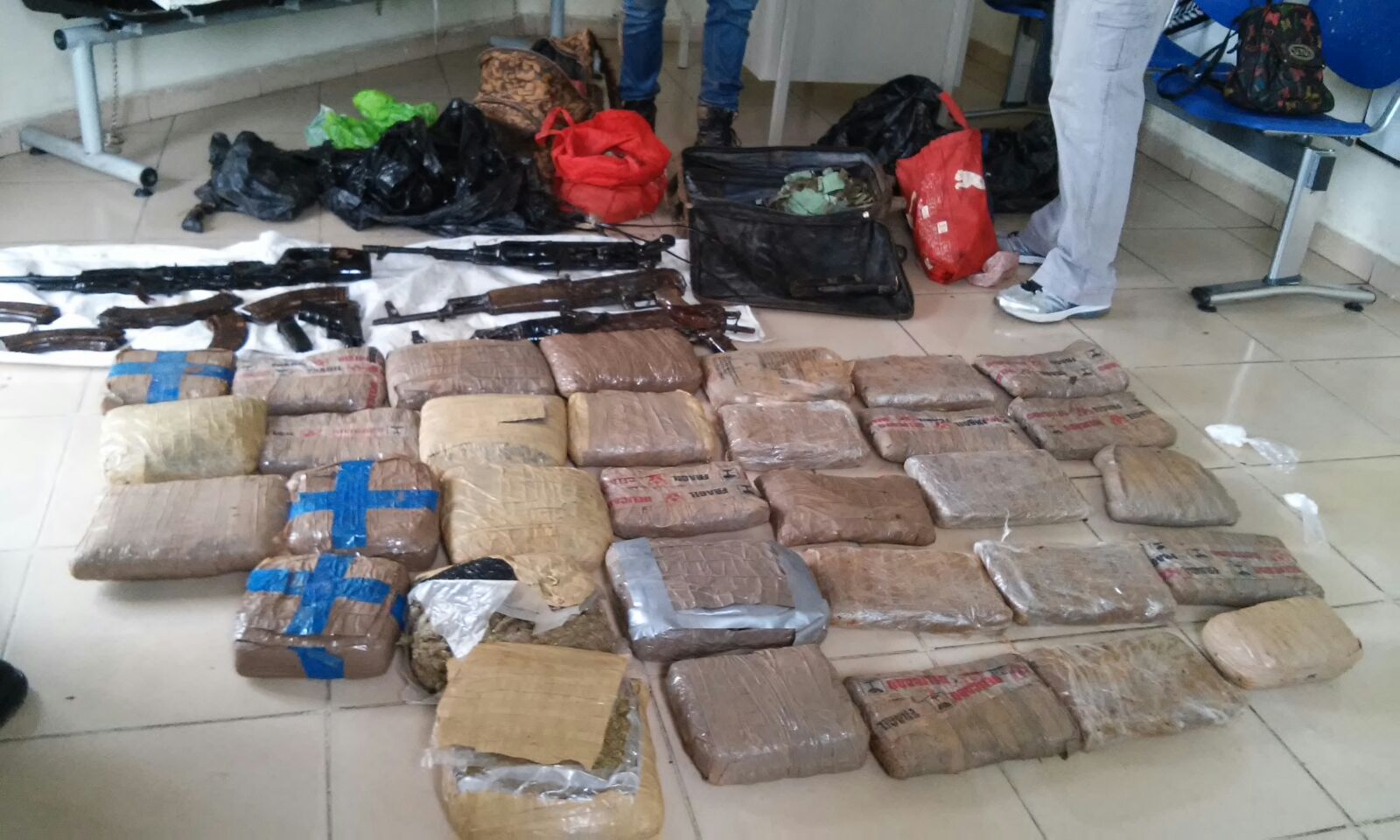 Unidades especializadas antinarcóticos de la Policía Nacional, lograron desarticular armas de guerras y drogas en el sector 9 del corregimiento de Mañanitas, en el área de Panamá Este. En la Operación realizada de manera conjunta con unidades de la Dirección Nacional de Información Policial (DNIP), la Unidad Canina, la Unidad Antiexplosivos además de miembros de la Policía Regular, se logró incautar 4 fusiles AK 47, municiones, además de dos pistolas calibre 9 milímetros marca Glock y 3 cartuchos con municiones. La acción policial se desarrolló en un área boscosa donde incluso se encontró dos tanques que contenían cerca de 40 paquetes en forma rectangular que al ser sometido a la prueba de campo, verificó ser la conocida droga marihuana en forma de pegón. Esta actuación policial forma parte del esfuerzo diario que realiza la actual administración de la Policía Nacional de Panamá, para detectar y desarticular los lugares utilizados por los grupos organizados para almacenar sustancias ilícitas. Tanto las armas de guerra, como los paquetes de drogas fueron puestos a órdenes de las autoridades judiciales correspondientes a fin de profundizar las investigaciones de rigor. |