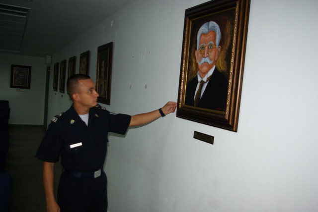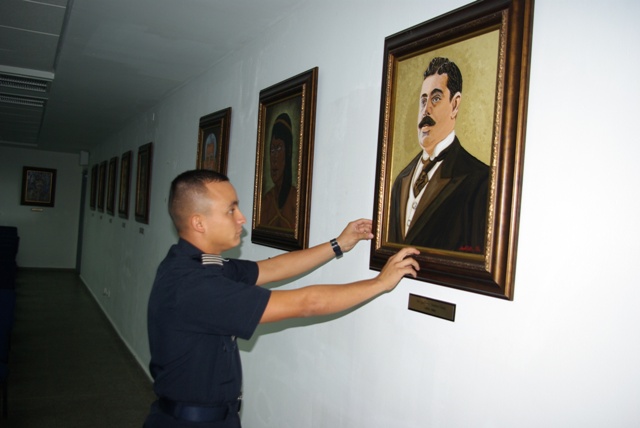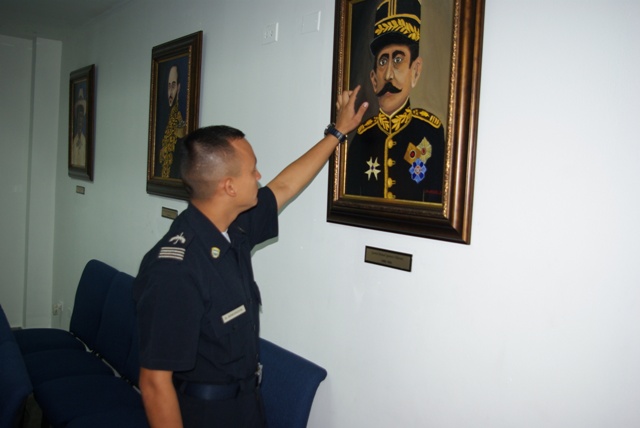 El Alférez de cuarto año de la Escuela de Oficiales de Policía, Dr. Justo Arosemena, (Esopol) de la Policía Nacional, Dwight Simonovic, además de cumplir con sus responsabilidades académicas en este centro de estudios, tiene tiempo para las artes plásticas. Este joven de 23 años, oriundo del distrito de Bugaba, provincia de Chiriquí, en el poco tiempo que le queda libre ha logrado pintar más de 20 cuadros todos de Próceres de la República, los cuales se exhiben en el Auditorio de la Nacionalidad Panameña, de la Esopol. Según Simonovic desde niño le gustó dibujar, en la escuela primaria ganaba los concursos de dibujos, ya en la secundaria una de sus profesoras le descubrió el talento y lo incentivó para que utilizara otras técnicas con lápices de colores para que le diera color a los rostros de las personas que dibujaba. Siempre que dibuja un rostro inicia primero con los ojos ya que ahí según él, es donde inicia la vida, luego la nariz, después la cara, el cabello, por último el traje y el fondo. Aunque no ha tomado ningún curso de perfeccionamiento en pintura, la técnica que utiliza es el acrílico, con la degradación de los colores, pinceladas con manchas para crear profundidad en el cuadro. Nos cuenta el alférez que desde tercer año en la Esopol, ha pintado cuatro veces al Dr. Justo Arosemena, son cuadros que piden mucho ya que son para colocarlos en la escuela en Veraguas, para la dirección o para la sala de guardia. El alférez Dwight Simonovic se muestra orgulloso por los cuadros que ha pintado casi todo de los Próceres de la República, Belisario Porras, los generales José Domingo Espinar, Manuel Quintero Villarreal, así como los que participaron en la Guerra de los Mil Días, Victoriano Lorenzo, y la Batalla del Puente de Caledonia. Herencia de familia Este joven talento, de mediana estatura, asegura que ese don al dibujo lo ha heredado de su familia, ya que su bisabuelo y abuelo pintaban en acuarela que es una técnica más difícil, su papá que es un policía jubilado le gusta dibujar, paisajes. Tiene dos hermanas la mayor de 25 años, su hermana menor de 17 años que está terminando la secundaria. El alférez de IV año tiene como tarea pintar el rostro del Presidente de la República Juan Carlos Varela, y para ello se está preparando para obtener las mejores fotos del mandatario e iniciar ese gran reto.