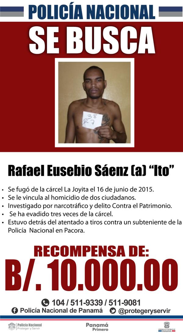 La Policía Nacional continúa la búsqueda de los dos prófugos: Christian Campbell, alias "Omi", y Rafael Salinas, alias "Ito", prófugos de La Joyita desde el mes de junio. Estos dos antisociales considerados de alta peligrosidad, mantienen casos por homicidios, robos, narcotráficos. Ambos han sido señalados en más de una ocasión en hechos vinculados al "tumbe de droga". La Policía Nacional, ofrece una recompensa de $10,000.00 por cada uno de los prófugos y pide a la ciudadanía la colaboración. Si tienen información sobre el paradero de alguno, se comunique a través de las líneas de la Policía Nacional 104, 511-9339 ó 511-9081. Estos dos sujetos en compañía de otros 4 detenidos, que ya fueron recapturados, se fugaron del pabellón de máxima seguridad del centro penitenciario La Joyita, el pasado 16 de junio.
