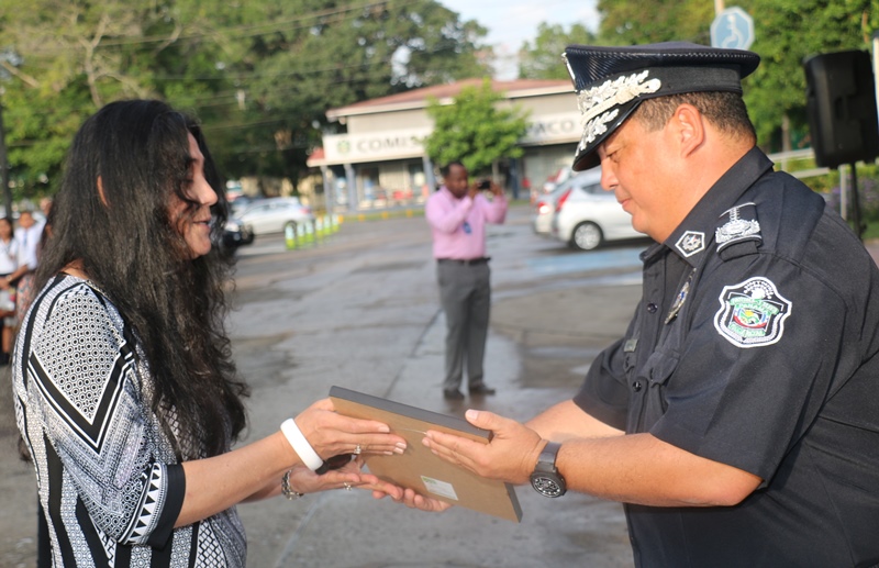 El Director General de la Policía Nacional Omar Ariel Pinzón Marín, junto a miembros de su Directorio General e invitados especiales como el Brigadier Fernando Gómez, de la Embajada de México, dieron la bienvenida a un grupo de estudiantes del Instituto América durante el acto cívico, realizado en la sede principal de la Policía Nacional, ubicada en Ancón. “Para la Policía Nacional es un orgullo y un placer tenerlos aquí compartiendo en este día” dijo el Director General de la Policía Nacional, Omar Ariel Pinzón Marín, quien entregó un obsequio institucional a la Subdirectora del plantel, Anayansi Moreno. El Director General durante su discurso exhortó a los jóvenes a seguir estudiando y así alejarse de la delincuencia. Durante el acto protocolar, se realizó la colocación de ofrendas florales al monumento de los Caídos en el cumplimiento del deber, de esta manera se honra la memoria de nuestros héroes. Acto seguido, un grupo de reservistas de la Policía Nacional, recibieron de manos del Director General de la Institución Omar Pinzón, el escudo de su Asociación. Pinzón, indicó que estos hombres son ejemplo a seguir de las nuevas generaciones de uniformados que conforman este primer estamento de seguridad del país. X aniversario de Operaciones El momento fue oportuno para que se felicitara a la Dirección de Operaciones de la Policía Nacional, por su aniversario número 10. “En nombre propio y en representación de toda la Policía Nacional expresamos una fervorosa felicitación al comisionado José Miguel Ríos García, responsable actual de la Dirección de Operaciones, a su cuerpo de oficiales y a cada uno de los integrantes juramentados y no juramentados que allí laboran. Su dedicación y profesionalismo fortalecen y validan nuestra misión de proteger y servir”. Las actividades culminaron con un desayuno ameno ofrecido por el Director de la Policía Nacional Omar Pinzón, a los estudiantes y grupos de reservistas de la Policía Nacional. |