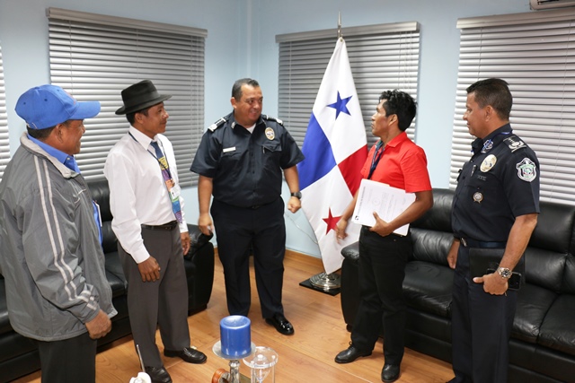 Una reunión de coordinación sostuvo el Director General de la Policía Nacional, Omar Ariel Pinzón Marín y el Subdirector Operativo, Javier Castillo con autoridades de la Comarca Madugandí. “Nos complace su presencia en la sede policial, depositando así en nosotros su confianza producto de nuestro acercamiento y respaldo a la comunidad”, dijo el Director General, Pinzón. Durante esta reunión, fueron atendidas las inquietudes y recomendaciones expuestas por Otilio Matos, Segundo Cacique General de la Comarca, quien junto a Antonio Núñez, Secretario Comisionado Comarcal y Briseño Garibaldo, Corregidor Comarcal, agradeció al Director General de la Policía Nacional todo el apoyo brindado a las comunidades indígenas de la comarca. En su labor de acercamiento con todos los sectores del país, la Policía Nacional implementa programas encaminados a la prevención y de desarrollo humano, para atender de manera integral las necesidades de la comunidad para beneficio de todos los residentes. para coordinar acciones en beneficio de la comunidad en materia de seguridad y prevención. |