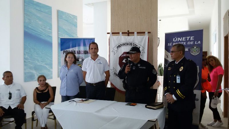 Todo un éxito fue la inauguración del programa Vecinos Vigilantes en las urbanizaciones de los residenciales del P.H. Waterways y Coral Park, ubicados en Playa Blanca, Río Hato en la provincia de Coclé. En la actividad se contó con la presencia del subcomisionado Manuel Vence jefe del área de Antón, teniente Mario Ovalle de Seguridad ciudadana, el señor Albert George Johuros organizador del programa, el jefe de seguridad de los residenciales el señor Emiliano Bethancourth, el capellán José Serrano e invitados especiales. Con esta nueva inauguración los residentes se suman al trabajo mancomunado que mantiene la Policía Nacional en conjunto con las comunidades, para mejor la seguridad y bienestar de los conciudadanos. Albert B. Yohros, coordinador principal del programa , dijo que con estos programas se fortalece la comunicación con la Policía, permitiendo tener conocimiento de los hechos delictivos en las áreas y así tomar las medidas. "Gracias a las señales y sistemas de alarmas entre otras estrategias recomendadas por la Policía, lograremos un trabajo en equipo, con la finalidad de frustrar intenciones delictivas", manifestó el señor Yohros. Por su parte, el subcomisionado Manuel Vence, resaltó el trabajo que hace la Policía Nacional junto a las comunidades, para velar por su la seguridad. |