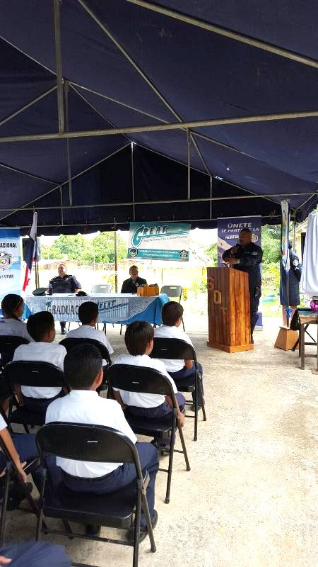 Unidades de Niñez y Adolescencia de la Zona Policial de Coclé, llevaron a cabo recientemente el acto de clausura del programa Educación y Entrenamiento en Resistencia a las Pandillas (GREAT), dictado a 25 niños de la escuela Sofía Quirós de Tejeira, ubicada en el sector de Las Lomas en Penonomé. En la ceremonia de graduación estuvieron presentes el comisionado Aníbal Prado, jefe de la 2da Zona Policial; el vicegobernador de la provincia de Coclé, el licenciado Rommel Quirós; la profesora Marisol Coronado, directora del plantel educativo, personal docente, administrativo y padres de familias. Durante la actividad los presentes se deleitaron con la participación del conjunto folclórico de la escuela y declamaciones de los estudiantes del V grado B. Por su parte, el licenciado Rommel Quirós, dijo reconocer el trabajo que realiza la Policía Nacional, en educar a nuestros niños y adolescentes en temas tan importantes como la prevención en el uso de sustancias ilícitas o pertenecer a pandillas. En tanto, el comisionado Prado manifestó que se continuará trabajando en las escuelas para capacitar a los niños y enseñándoles a decir “No a la violencia, al consumo de drogas y no a la integración de Pandillas". “Precisamente, para el 25 de septiembre, estaremos clausurando el programa de GREAT en la escuela Rubén Darío Carles en Penonomé”, indicó Prado. La directora del plantel la profesora Marisol Coronado, le agradeció a la Policía Nacional por su labor en pro de una niñez y adolescencia más segura.