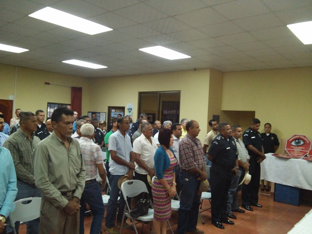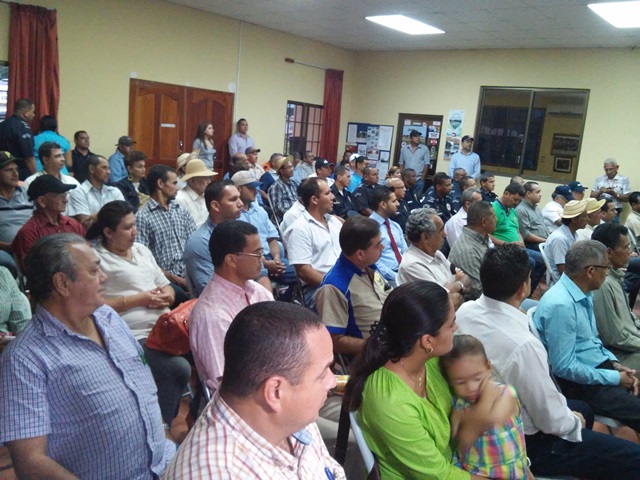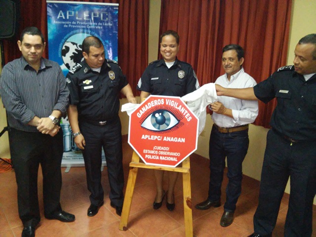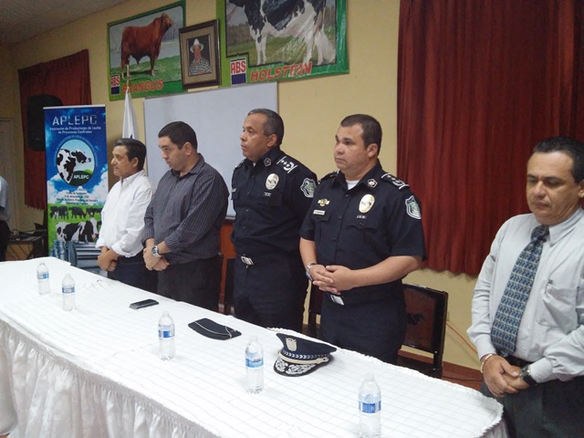 La provincia de Herrera es parte de nuestro programa “Ganaderos Vigilantes”, una alternativa preventiva con esfuerzos compartidos que busca prevenir hechos delictivos y crear un clima de confianza basado en una estrecha colaboración entre los ganaderos y la Policía Nacional. Esta inauguración se llevó a cabo en el salón de conferencia de La Asociación Nacional de Ganadero, ubicada en la Vía Circunvalación, en la Arena de Chitré; allí se dieron citas más de 150 personas dedicadas a fincas ganaderas. El comisionado y jefe del Departamento de Seguridad Ciudadana, Rafael Alvares estuvo dirigiendo el acto, en compañía del Comisionado Aníbal Prado, jefe de la Zona de Policía de Coclé; Frank Pinilla, jefe de la Zona de Policía de Los Santos e Ismael Herrera Jefe de la Zona de Policía de Herrera. También asistió el Doctor Raúl Rivera, gobernador de la Provincia de Herrera, miembros de la Junta técnica de la provincia y diferentes autoridades. El acto de juramentación de la directiva de Ganaderos Vigilantes, fue realizado por el Subcomisionado Rogelio Villa Corbin, ejecutivo de la zona de la Policía de Herrera, estas personas se comprometieron a trabajar en el programa en constante interacción con la sexta Zona Policial. De igual forma se dio la develación del logo de Ganadero Vigilante, que representa la activación de este programa comunitario en la provincia. El Comisionado Ismael Herrera, jefe de la sexta zona, felicitó a los ganaderos del área por unirse a los programas comunitarios y exhortó a mantener la interacción permanente con la Policía Nacional, para mantener la paz y tranquilidad de todos. |