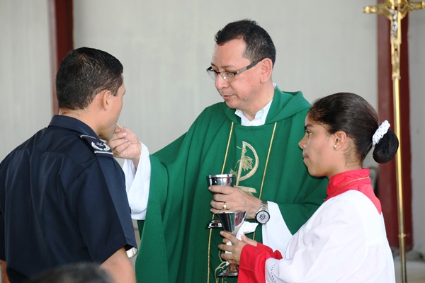 El Capellán de la Policía Nacional Edgar Flores auspicio la misa en honor a San Miguel Arcángel. Destacó que con esta acción de gracias se conjuga el fervor religioso, las tradiciones, los eventos culturales y populares.