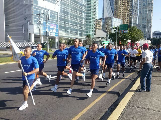 Nuestros cadetes participaron en la octava carrera de 5 kilómetros de los Boy Scouts, en la Cinta Costera, este domingo 20 de septiembre. En la carrera que se desarrolló Bajo el eslogan “Fortaleciendo los Valores Familiares”, nuestra delegación estuvo compuesta por 30 cadetes de primero y segundo año de la Escuela de Oficiales Doctor Justo Arosemena, quienes se alzaron con la victoria, llevándose el primer lugar. En segundo puesto resultaron ganadores los participantes del Servicio Nacional Aeronaval y en tercer lugar representantes del Cuerpo de Bomberos de Panamá. El ministro de Desarrollo Social, Alcibíades Vásquez hizo entrega del banderín a los ganadores de la Escuela de Oficiales Doctor Justo Arosemena, por su hazaña en la categoría pelotón. El marcador reflejó un tiempo de 13.01 para la Escuela de Oficiales Doctor Justo Arosemena, 13.51 para el Servicio Nacional Aeronaval, y 14.40 para el Cuerpo de Bomberos de Panamá.