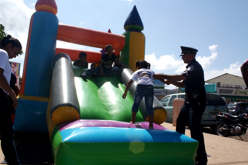 Una feria familiar en el Parque 19 de octubre, llevamos a en este cierre de vacaciones, a los niños del distrito de Aguadulce. La actividad inicio con una vuelta ciclística, recorriendo las calles del distrito aguadulceño, desde el Cuartel de Policía, finalizando en el Parque 19 de Octubre de dicho distrito. Grandes y pequeños disfrutaron del evento preparado por los uniformados, donde contaban con máquina de saltarín, piñatas, golosinas, palomitas de maíz, algodón de azúcar, raspado. Se contó con la participación del El Grupo Azul de La Iglesia Cristiana de Aguadulce y el Grupo Juvenil Canino de Penonomé ( GRUJUCAN), colaboradores de la Policía Nacional, quienes dieron muestra de sus habilidades y destrezas. Los menores manifestaron su alegría y agradecieron a los uniformados por los momentos agradables en familia Para el subcomisionado Luis Davino estas actividades permiten el acercamiento con la comunidad, donde las familias comparten, a la vez que aprenden sobre la información en seguridad y prevención, que la Policía Nacional brinda a los presentes. |