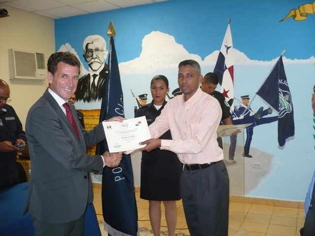 Nuestras unidades se especializaron en nuevas técnicas para hacerle frente a las bandas delictivas dedicadas al blanqueo y lavado de dinero, gracias a facilitadores franceses bajo el auspicio del Centro Interministerial de Formación Antidroga (CIFAD). La capacitación se realizó en las aulas del Instituto Superior Policial (ISPOL), allí los facilitadores enfatizaron en las estrategias que utilizan los carteles del narcotráfico, las mafias de Asia, Europa y América Latina, para lavar sus activos y acceder a dinero limpio. El acto de clausura y entrega de certificados fue presidido por el Comisionado David Ramos Subdirector General Penitenciario y por el embajador de Francia en Panamá Philippe Casenave. El comisionado Ramos agradeció en nombre del Director General de la Policía Nacional, Omar Ariel Pinzón Marín la cooperación que ha mantenido el gobierno francés a través de su red diplomática para que las unidades de la Dirección de Investigación Judicial (DIJ) y de la Dirección de Información Policial (DIP) participen de estas capacitaciones. Por su parte el embajador Casenave dijo que su gobierno es consciente de que el intercambio cultural es importante para fortalecer el estado de derecho y la seguridad pública. Estuvieron presentes en la actividad el Subcomisionado Manuel Zorrilla, director del Ispol y el teniente coronel de la Gendarmería Francesa, Juan Companie. |