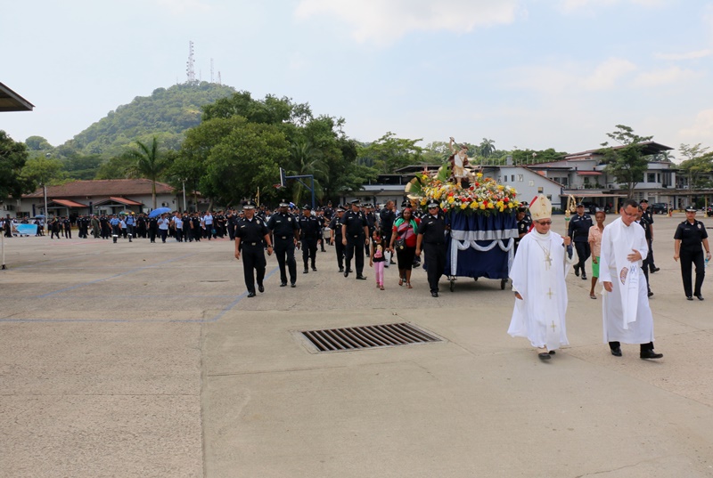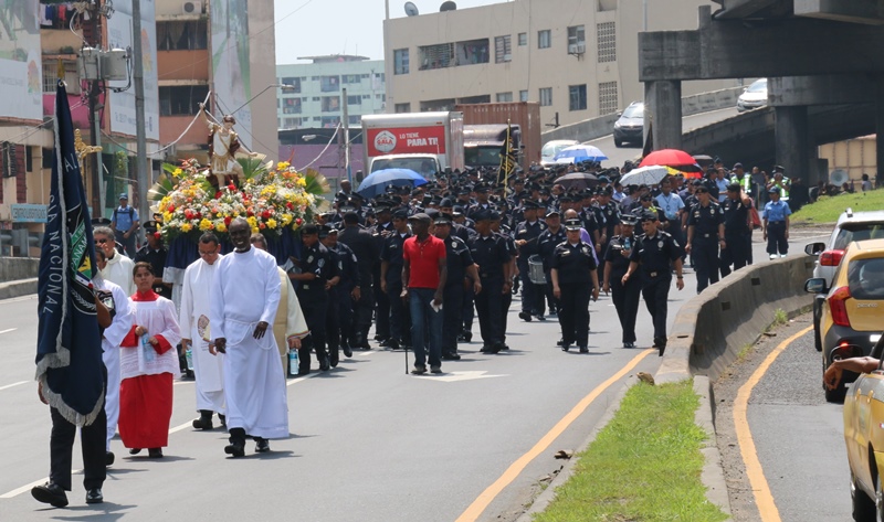 En honor a San Miguel Arcángel, Santo Patrono de los estamentos de seguridad, caminamos juntos en una procesión desde la subestación policial de Calidonia hasta la sede de la Policía Nacional donde se llevó a cabo una misa eucarística dirigida por el reverendo Edgar Flores, Capellán de la Policía Nacional. La imagen de San Miguel Arcángel recorrió la vía Omar Torrijos con lanza en mano y presto a defender a su pueblo, acompañado de quienes protegen y defienden a los panameños. En esta procesión participó el Comisionado David Ramos, Sub Director General de la Policía Nacional, miembros del Directorio Policía, unidades juramentadas y no juramentadas, acompañados de funcionarios del resto de los estamentos de seguridad como el Servicio de Protección Institucional, el Servicio Nacional Aeronaval y el Servicio Nacional de Fronteras. El Obispo de la Pastoral de la Fuerza Pública, Pedro Joaquín Hernández quien dirigió la procesión en honor a San Miguel, dijo que esta acción ayuda a crear mayor conciencia en la comunidad cristiana sobre quién fue este santo. “La esencia de esta celebración es ser siempre fieles, auténticos, honestos y transparentes, en la misión que realizan al estilo de San Miguel Arcángel” destacó el sacerdote. El Comisionado David Ramos, Subdirector General de la Policía Nacional, dijo que San Miguel Arcángel siempre acompaña a los uniformados en su lucha contra la delincuencia, pero en un marco de justicia en una organización que tiene que hacer cumplir las leyes. |