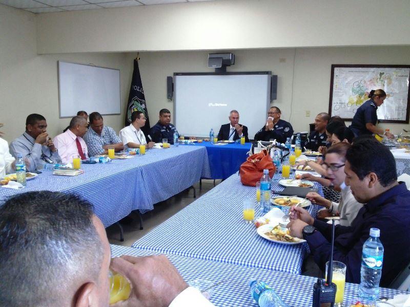Con el objetivo de fortalecer las vías de comunicación, los fiscales del Sector Oeste participaron de una amena reunión en la sede de la 10ma. Zona Policial de Panamá Oeste. En la reunión estaban presentes Adolfo A Pineda Fiscal Séptimo Superior del Ministerio Público y fiscales de los diferentes circuitos; además del Comisionado Gilberto Samaniego, oficiales, Jefes de Área, personal de la Dirección Investigación Judicial, Dirección Nacional de Inteligencia Policial y Asesoría Legal de la Zona. Finalizada la reunión, se ofreció un desayuno a los presentes, quienes agradecieron la atención del Jefe de la Zona, y poniéndose a disposición y reiteraron su apoyo para realizar un mejor trabajo en conjunto.