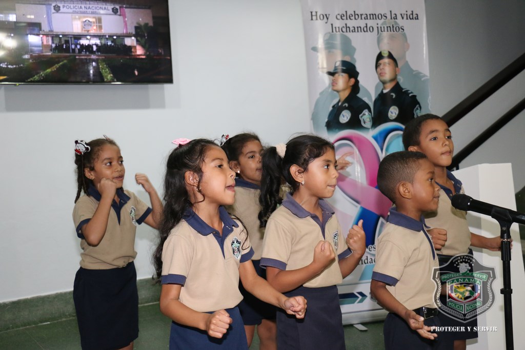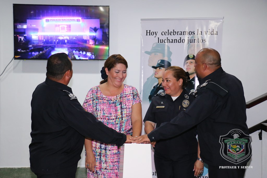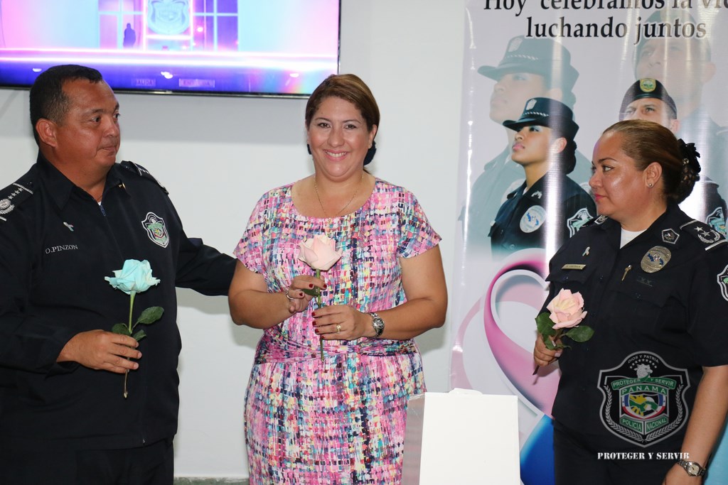 La Policía Nacional de Panamá se sumó a la campaña de “Cinta Rosada y Celeste” que busca prevenir el cáncer de mama y de próstata, impulsada por el Despacho de la Primera Dama de la República Lorena Castillo de Varela, durante el presente mes de octubre. La sede de la Policía Nacional encendió luces rosadas y celeste, colores distintivos de la lucha contra el cáncer de próstata y mama, iluminando así todo el edificio ubicada en el corregimiento de Ancón. El Director General de la Policía Nacional, Omar Ariel Pinzón Marín estuvo presente en este acto y enfatizó en la importancia de esta campaña que ataca el cáncer, mal que causa perjuicios en la población. “Estos males hay que afrontarlos, sobre todo con conocimiento, con prevención y con tiempo, porque ahí está la clave del éxito” destacó el jefe policial” manifestó el jefe policial. Pinzón Marín recordó las palabras del Presidente de la República Juan Carlos Varela, quien afirmó que la Campaña de la Cinta Rosada y Celeste es una lucha de todos, quienes hemos tenido un familiar o un amigo que sufre de esta enfermedad. Los niños del Centro de Orientación Infantil y Familiar (C.O.I.F) y el conjunto típico de la institución familiar llevaron a cabo lucidas presentación en un acto realizado en la sede principal, arrancando aplausos de los presentes. En tanto, la jefa de la Dirección de Bienestar Policial y Familiar, la Subcomisionada Elida Ortega se refirió a esta campaña como una lucha para conservar la vida y la salud. “Somos una institución encaminada a hacer el bien, seres humanos que nos solidarizamos con las buenas causas, como esta campaña” destacó. Esta campaña tiene como objetivo concienciar a la población sobre la importancia de examinarse a tiempo, por lo que el Despacho de la Primera Dama inició la agenda del mes de la prevención, bajo el lema “Hoy celebramos la vida luchando juntos”. En esta actividad estaban presentes el Director General de la Policía Nacional, Omar Ariel Pinzón Marín; miembros del Directorio Policial, uniformados y miembros no juramentados. |