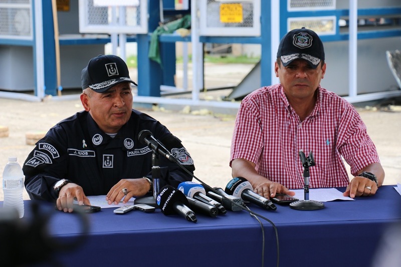 Unidades de la Policía Nacional de servicio en la Dirección Nacional Antidrogas en coordinación con la Fiscalía Especializada en Delitos Relacionados con Drogas, decomisaron 552 paquetes de cocaína, ocultos en máquinas recicladoras que estaban sobre las planchas de las grúas, en el sector de Parque Sur de Tocumen. En conferencia de prensa, el Director Nacional Antidrogas de la Policía Nacional, John Dorheim dijo que fue a través de la “Operación Reciclaje” que se logró este importante decomiso y la aprehensión de 5 sujetos, la incautación de 4 vehículos y 5 mil 628 en efectivo. También que entre los detenidos figuran dos panameños, dos colombianos y un haitiano, quienes se la ingeniaron para trasladar la mercancía en dos grúas, cada una con las máquinas recicladoras. En lo que va del año a través de las diferentes acciones policiales se ha decomisado más de 23.5 toneladas de drogas, entre ellas cocaína, marihuana y heroína. En la conferencia de prensa estuvo presente el Director Nacional de Operaciones, José Ríos y el jefe de la Dirección Nacional Antidrogas de la Policía Nacional, John Dornheim.