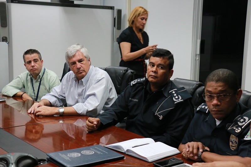 El Director de la Policía Nacional, Omar Ariel Pinzón se reunió con representantes del consorcio Odebretch, encargado de la construcción de la Línea 2 del Metro de Panamá. El objetivo de la reunión fue la presentación del proyecto a los uniformados y la debida coordinación en materia de seguridad que requerirá la obra al momento de que se lleve a cabo el traslado de vigas y materiales vía terrestre. En la reunión que se llevó a cabo en la sede principal de la Institución Policial, estaban presentes los representantes del consorcio Odebrech, el Director de la Policía Nacional, el jefe de Operaciones de Transito, comisionado Javier Fanuco y el miembros del Directorio. |