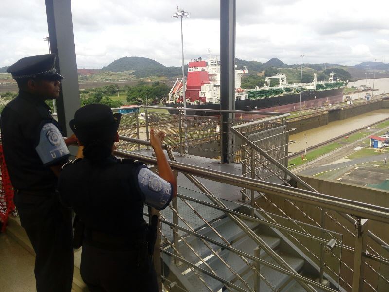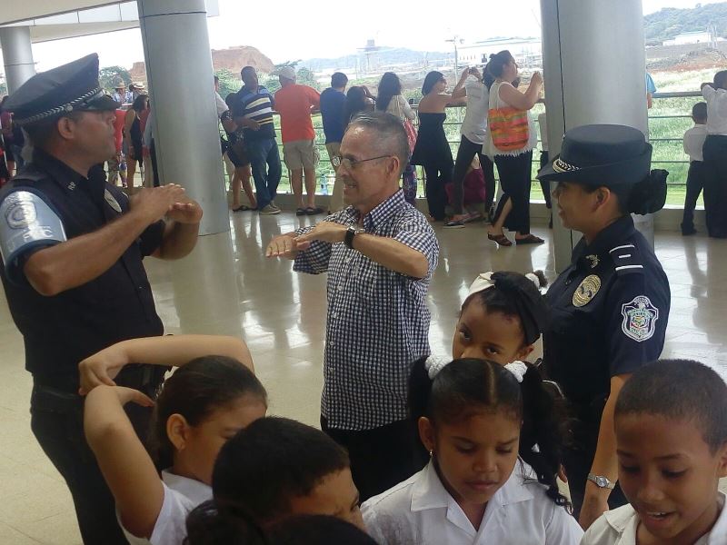 Un grupo de niños y niñas que residen en los corregimientos de El Chorrillo y Santa Ana, acompañados por efectivos de la Policía Nacional de servicio en la Unidad Preventiva Comunitaria (UPC) visitaron las esclusas de Miraflores, donde aprendieron más sobre la historia del Canal de Panamá. Muy emocionados, los pequeños observaron el abrir y cerrar de las compuertas que le dan paso a los buques, a la vez que escuchaban muy atentos a los guías del Centro de Visitantes de Miraflores, quienes brindaron interesantes datos sobre la evolución de esta magna obra de ingeniería. Esta gira, además de divertida tiene como objetivo que los pequeños conozcan más de la historia del Canal, su operación, su papel en el comercio mundial y los avances de la ampliación de esta importante maravilla de la ingeniería moderna. La Policía Nacional desarrolla diversos programas para promover la educación y valores en los niños y niñas panameños, que son el futuro del país. |