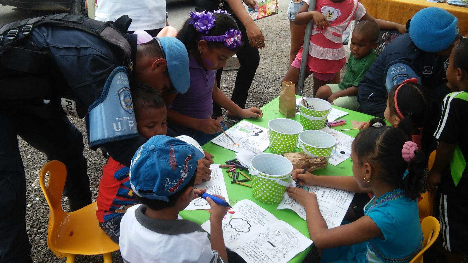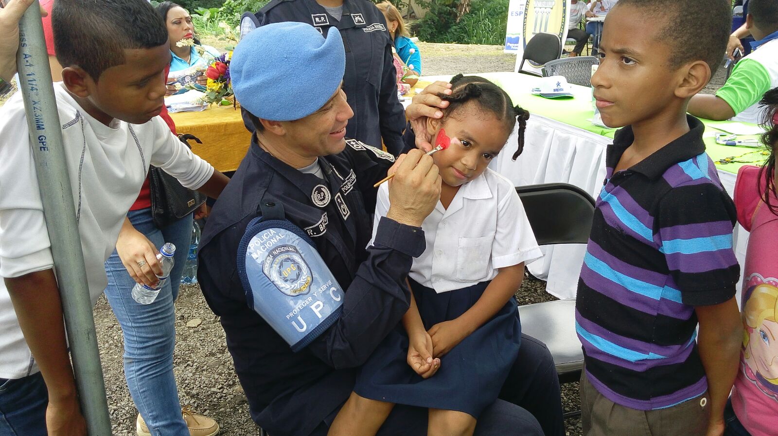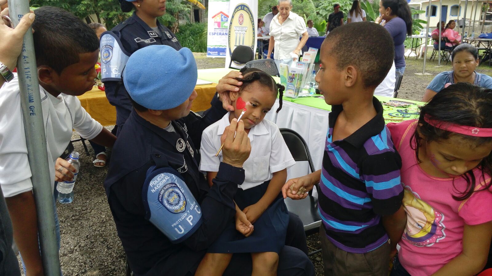 La Policía Nacional a través de la Segunda Región de Policía de San Miguelito, realizó una Feria Interinstitucional con ventas de productos de la canasta básica familiar y otras necesidades de quienes residen en este distrito. En la actividad que este mes se llevará a cabo en área de Samaria, participaron funcionarios del Ministerio de Vivienda y Ordenamiento Territorial, Ministerio de Desarrollo Social, El Instituto para la Formación y Aprovechamiento de los Recursos Humanos, Autoridad de la Micro, Pequeña y Mediana Empresa, Ministerio de Trabajo y Desarrollo Laboral, Ministerio de Educación, entre otros. Las unidades de la Unidad Preventiva Comunitaria (UPC) de Samaria, fueron los encargados de dar seguridad a quienes visitaron la feria y entretener a los niños con “pinta caritas”, “brinca brinca”, globos y otras acciones. Las unidades policiales también dictaron charlas de prevención, educación vial. |