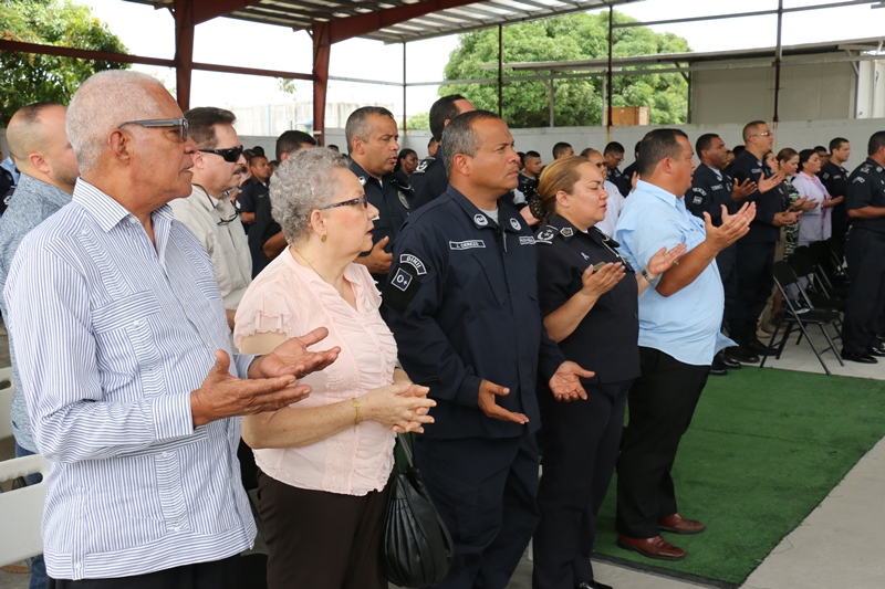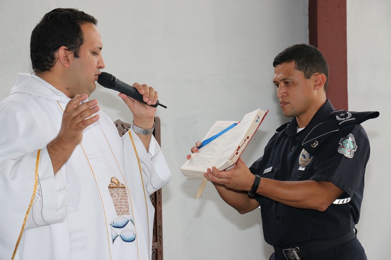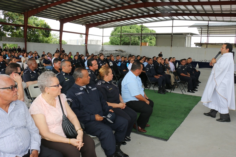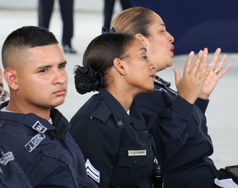 “En esta misa de sanación, la Policía Nacional se llena de alegría con un corazón lleno de fe y esperanza, donde pedimos de igual manera que nuestra labor de proteger y servir sea cada vez mejor en beneficio del país”, resaltó Omar Pinzón Director General. Durante el acto litúrgico, el padre Fernando Fontane Tejada reflexionó ante los presentes sobre la importancia de fortalecer nuestra creencia religiosa y confiar en Dios, como remedio para sanar el alma, el espíritu y las dolencias físicas. La Unción de los enfermos es el sacramento que le da fuerza, ánimo y consuelo a una persona enferma, y responde a la necesidad e importancia de asistir a los enfermos para que el Espíritu Santo los acompañe y reconforte, de conformidad con el mandato de Jesucristo, quien según en el Evangelio de Marcos 16:17-18 dijo: en mi nombre, impondrán las manos sobre los enfermos. Algunos de los presentes, aprovecharon para recibir la Unción con aceite sagrado, encomendando así su salud y bienestar al Todo Poderoso. Esta ceremonia religiosa, forma parte de las actividades en conmemoración del mes de la Cinta Rosada y Celeste, campaña que es apoyada por la Policía Nacional. Miembros del directorio policial, oficiales, agentes y personal no juramentado se unieron en la fe a Dios, en la Eucaristía de Unción de los Enfermos, realizada este viernes 9 de octubre en la sede policial ubicada en el corregimiento de Ancón.