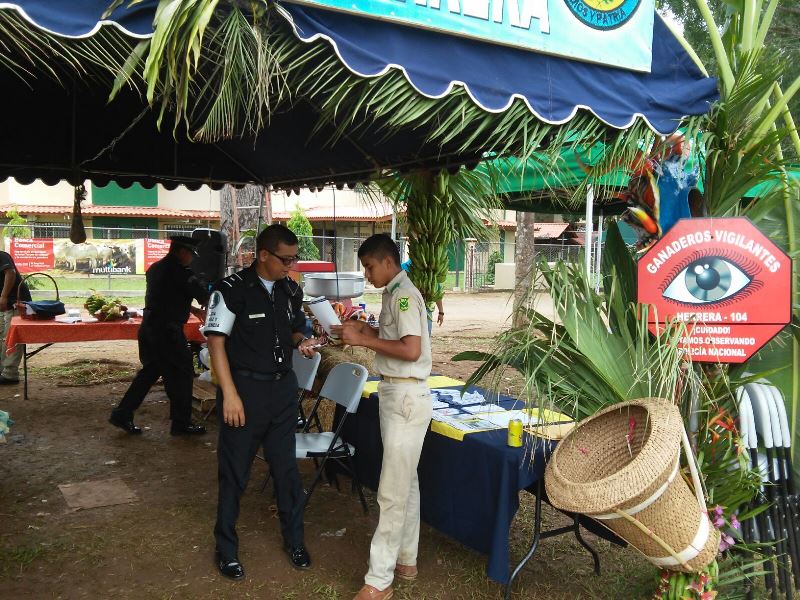 La Zona de Policía de Herrera se hizo presente con un stand en la feria del Instituto Nacional de Agricultura (INA), en celebración de los 75 años de aniversario de esta institución educativa, promotora del sector agro en nuestro país. Durante esta feria realizada en Divisa se expusieron objetos tradicionales y productos agrícolas de la región de Azuero, provincias centrales y tierras altas. Los uniformados compartieron con los asistentes a quienes les entregaron volantes con información de los programas comunitarios que lleva la Policía Nacional, medidas de seguridad para minimizar los actos delincuenciales. Mientras que las unidades del Servicio de Policía de Niñez y Adolescencia, conversaron con los estudiantes del INA, que se mostraron interesados en los programas de desarrollo humano que realizan. En tanto, el Grupo Juvenil Canino (Grujucan) junto a los policías fueron aplaudidos, tras presentar un show, en el que demostraron las habilidades de los canes que forman parte de este programa. |