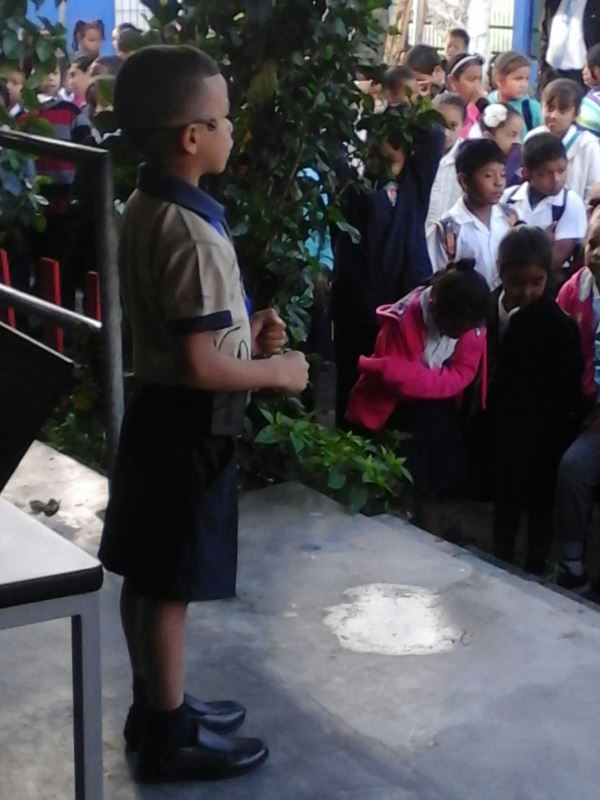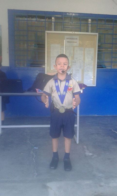 Kevin Ortega Rodríguez, estudiante del Centro de Orientación Infantil, “Fuente del Saber” de la zona policial de Chiriquí, fue invitado a participar en el acto cívico de la Escuela Básica de Volcán. El distinguido alumno fue el ganador del concurso mini orador a nivel nacional, donde tuvieron participación todos los COIF policiales del país. Con el tema “Juventud Policial al servicio de la comunidad”, ortega captó la atención de todos los docentes, educandos y administrativos de dicho centro escolar de tierras altas. |
