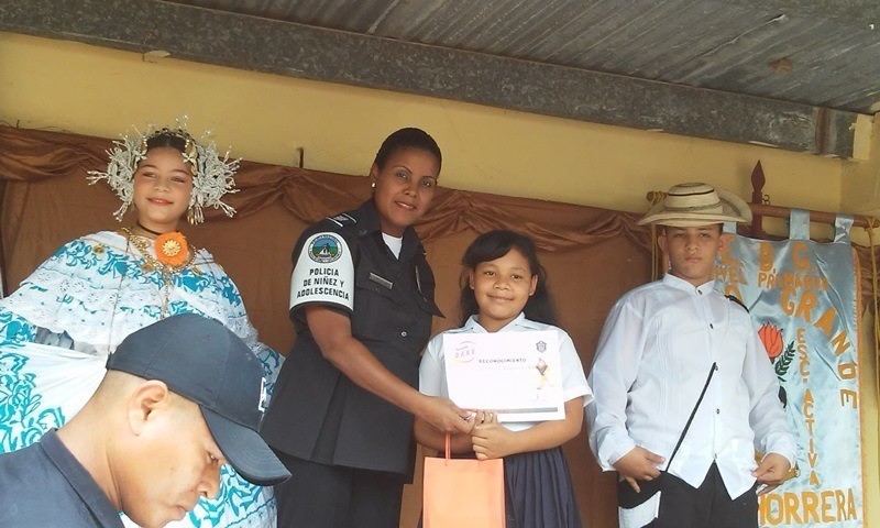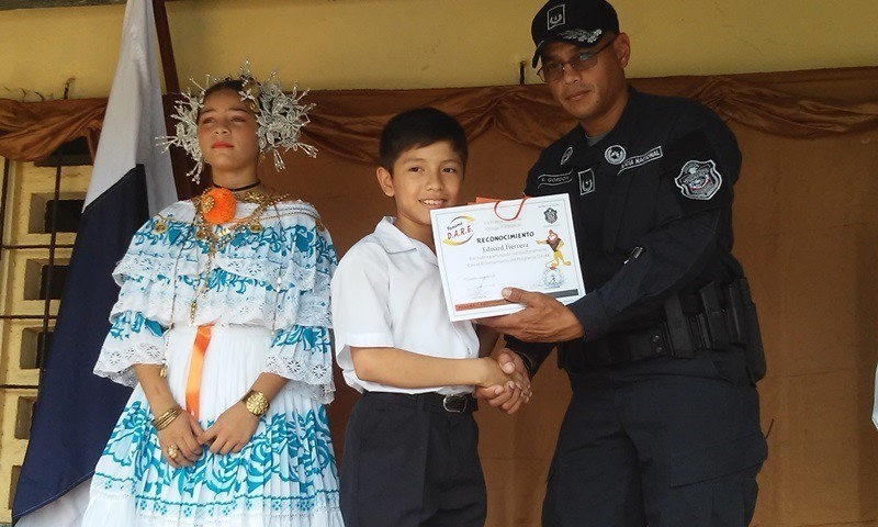 Los niños del sexto grado del Centro Educativo Potrero Grande en La Chorrera, culminaron el Programa Educación para la Resistencia al Abuso de las Drogas y la Violencia (DARE). Este programa permite que los estudiantes reciban información y capacitación para evitar ser víctimas del consumo de estupefacientes y de la violencia. Para ello, las unidades de Policía Nacional de Menores interactuaron con los jóvenes utilizando material didáctico y así crear un ambiente ameno y lúdico con el cual no solo aprenderán a rechazar el consumo de drogas, sino que también fortalecerán sus valores. El programa inició en el mes de abril y culminó en septiembre del presente año, con una duración de 6 meses a cargo del cabo 1ro. Onorio Rodríguez. La profesora Elsa Jaén, directora del plantel agradeció a la Policía Nacional por haber acogido la solicitud de integrar a sus estudiantes en estos programas estableciendo relaciones positivas en la juventud con las unidades de policía y dentro de la comunidad. Por su parte, el mayor Edgardo Gordon, en representación del jefe de Zona, exhortó a los estudiantes a poner en práctica los conocimientos adquiridos, haciendo énfasis que al salir de sexto grado, no solo cambiarán de escuela, sino de amistades, ambiente y es allí donde deben estar preparados para decir “NO” a todo aquello que va en contra de una vida digna.