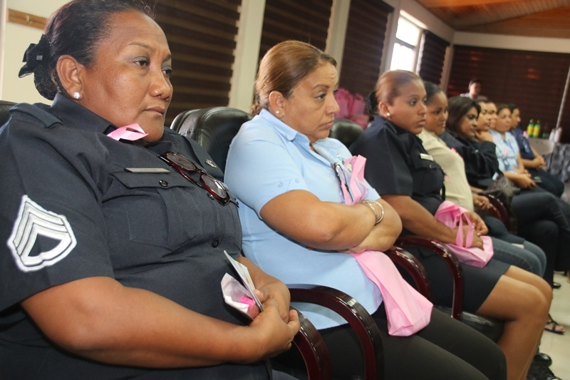 Un total de 40 mujeres juramentadas y no juramentadas de la Policía Nacional fueron capacitadas por la Dra. Germanilys González, ginecóloga obstetra y el Dr. Gustavo Carrizo, especialista en Mastología y cirujano de mamas, sobre la prevención y detección a tiempo del cáncer. Ambos profesionales respondieron a las inquietudes de las participantes, a quienes les explicaron cuáles son los factores de riesgo, tratamientos y cuidados. La mayor Mery Palacios, jefa de Servicios Médicos dijo que durante el mes de octubre, la Policía Nacional mantiene una agenda con diversas actividades dirigidas a educar al personal sobre el tema. Esta conferencia organizada por la Dirección Bienestar Policial y Familiar, busca que las unidades tomen conciencia y se realicen su autoexamen para detectar cualquier anomalía a tiempo. |