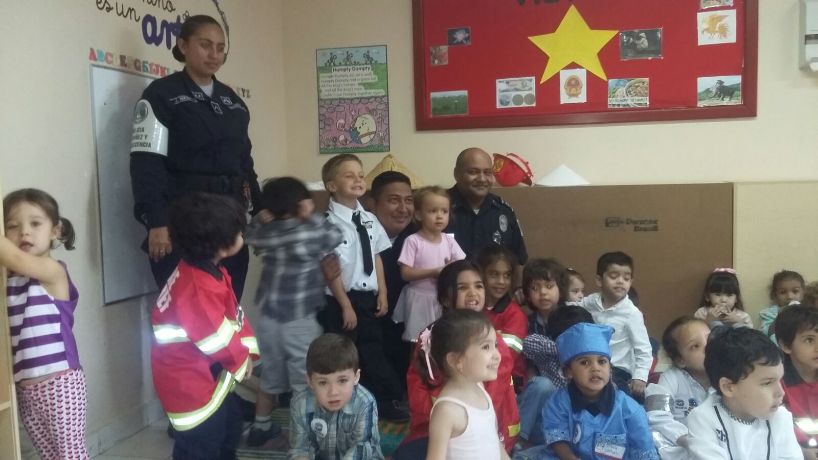 Unidades de la Policía Nacional de servicio en Niñez y Adolescencia, compartieron un rato ameno lleno de sorpresas y alegrías con niños y niñas del Jardín de Infancia la Cuadra, ubicado en el corregimiento de Parque Lefevre. Los pequeños disfrutaron junto a las unidades policiales de juegos, pinta caritas, charlas sobre medidas preventivas. A estos niños también se les orientó sobre medidas de prevención y programas escolares llevados a cabo a nivel nacional.
