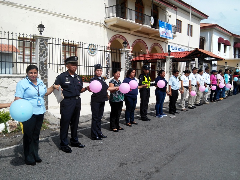Demostrando una gran sensibilidad social, miembros juramentados y no juramentados, así como amigos, familiares, allegados y fuerzas amigas de la Zona de Policía de Coclé, llevaron a cabo una cadena humana conmemorando el mes de la Campaña Celeste y Rosada en prevención del Cáncer. La actividad fue organizada por el departamento de Trabajo Social de la Zona Policía y tuvieron como objetivo sensibilizar a la población en general, así como a las unidades policiales, acerca de la necesidad de realizarse los exámenes correspondientes para detectar de manera oportuna algún posible tumor maligno. Participaron de la actividad diferentes instituciones, además de unidades de la zona quienes enviaron una exhortación a todas aquellas personas que aún no se han realizado el examen, para que tomen la decisión de hacerse el examen, acudiendo al centro de salud más cercano. |