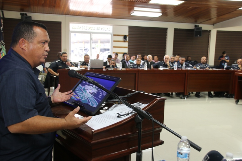 El Director General de la Policía Nacional, Omar Ariel Pinzón Marín dirigió una reunión de trabajo con empresarios, coordinadores de programas preventivos de seguridad ciudadana y encargados de la seguridad de locales del país, a fin de intercambiar ideas sobre prevención y seguridad. De acuerdo con el Director de la Policía Nacional, con esta reunión se busca fortalecer los vínculos con quienes representan a un sector importante de la población. “No solo buscamos palpar la percepción en materia de seguridad de los empresarios, sino coordinar un frente común” destacó. Los empresarios recibieron explicación del funcionamiento de los programas, por parte del Comisionado y jefe de Seguridad Ciudadana Rafael Álvarez y el Comisionado José Ríos jefe de la Dirección Nacional de Operaciones. Reuniones como estas, fortalecen los esquemas integrales de seguridad e incrementa las medidas de vigilancia en zonas comerciales. En la reunión estaban presentes representantes de los diversos programas de seguridad ciudadana que adelanta la Policía Nacional como lo son: Vecinos Vigilantes, Bancos Vigilantes, Ganaderos Vigilantes, Hoteles Vigilantes, entre otros. |