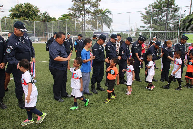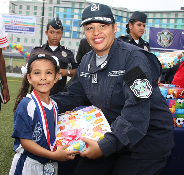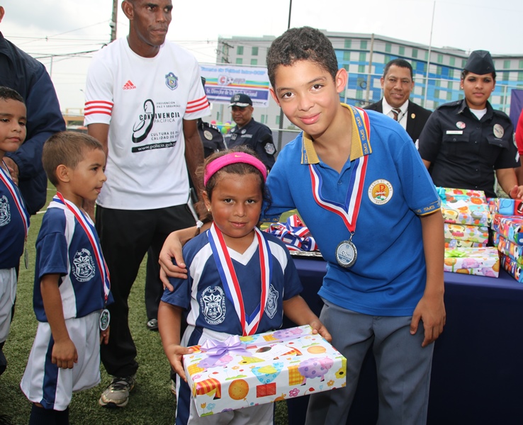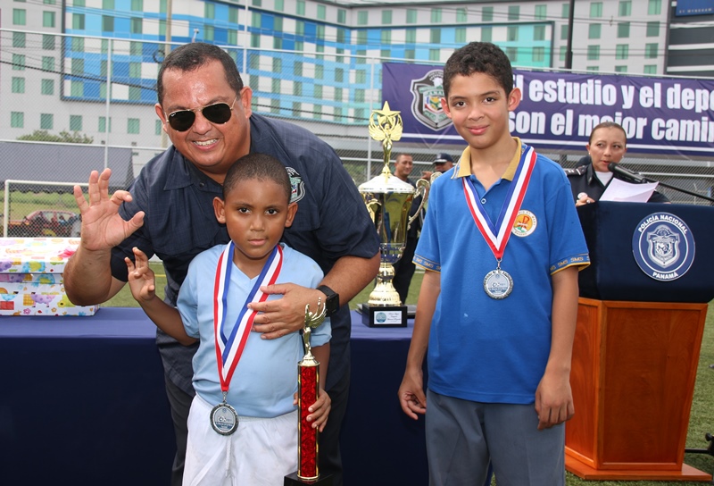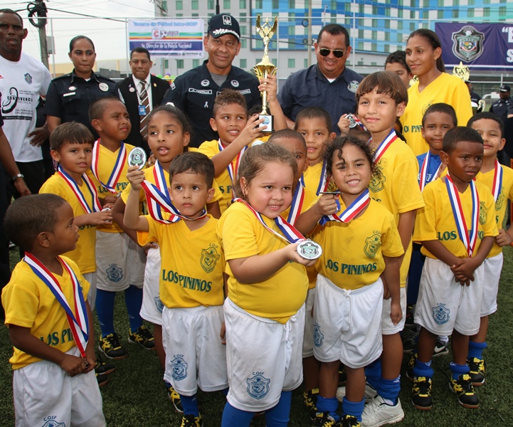 Definitivamente los niños son quienes irradian la alegría al mundo, esto se vio reflejado en el primer Torneo InterCoif “Copa Sr Director de la Policía Nacional”, donde participaron los cinco Centros de Orientación Infantil (COIF) de esta institución policial, a nivel nacional. En este primer torneo el COIF de la provincia de Veraguas se llevó el triunfo al dejar en el campo al equipo de Balboa, 1 gol a 0. En esta copa compitieron los COIF de Balboa, la provincia de Chiriquí, Veraguas, Colón y Panamá Oeste, representados por niños y niñas en las categorías Junior y Senior. Cada equipo con su uniforme alusivo a su provincia. El Director General de la Policía Nacional, Omar Ariel Pinzón Marín, inauguró esta Copa que ayuda a mantener una sana convivencia. Dijo Pinzón Marín que la Policía Nacional con estas actividades busca que los niños adquieran habilidades y condiciones físicas, pero lo más importante, compartir en un ambiente rodeado de paz. El Capellán Edgar Flores, bendijo a los equipos y a los presentes, mientras que el jefe de esta institución policial, Omar Pinzón realizó el saque de honor que daba inicio al torneo infantil de fútbol. Los juegos se realizaron de manera simultáneos en las dos categorías y la final tuvo que definirse por penales. Los aplausos, las frases de ánimo y hasta nervios, se vio reflejada en cada uno de los padres de estos pequeñines que asistieron al torneo que se llevó a cabo en la cancha de fútbol sintética, ubicada en Ancón sede de la Policía Nacional. Un ambiente de fiesta deportiva, donde los protagonistas dieron el todo por el todo, mostrando sus mejores jugadas. Los mini jugadores recibieron medallas por su participación, obsequios y para los equipos ganadores el trofeo de Campeón.