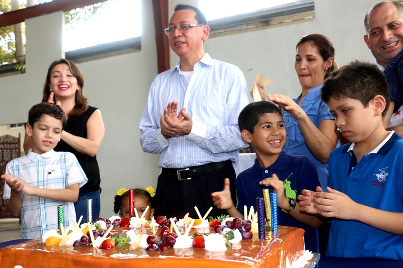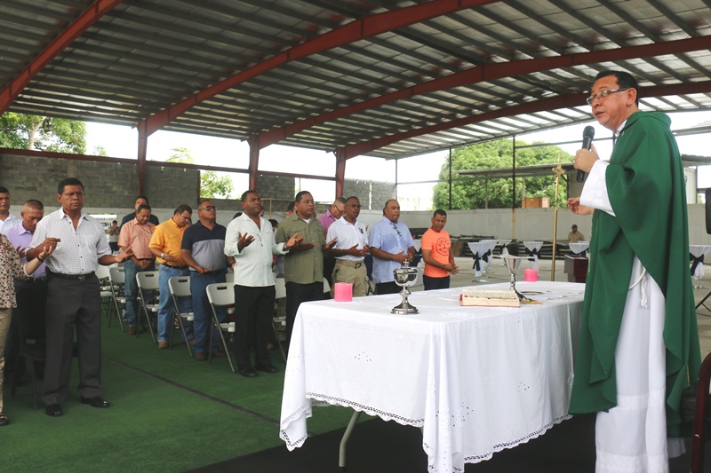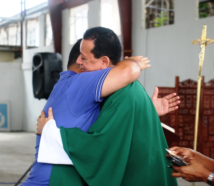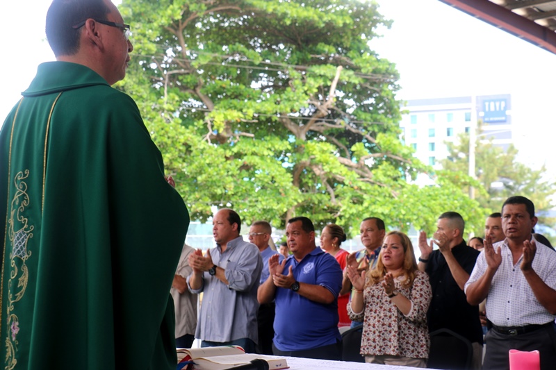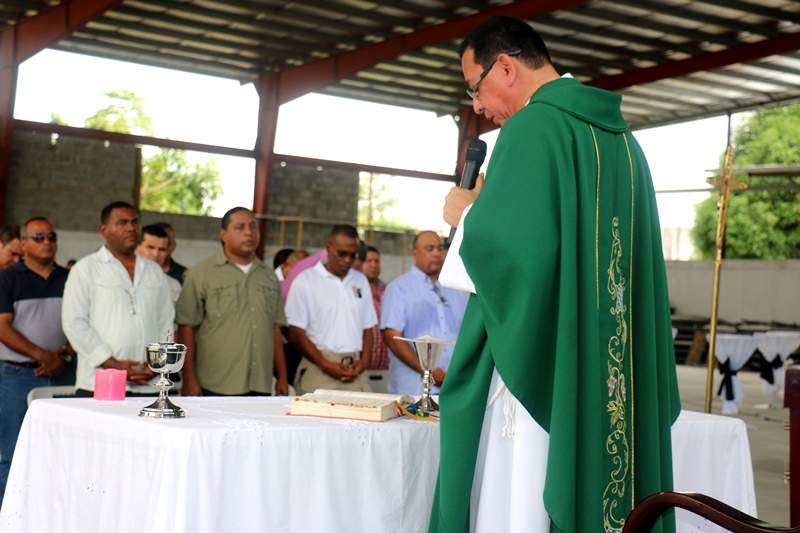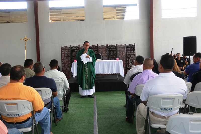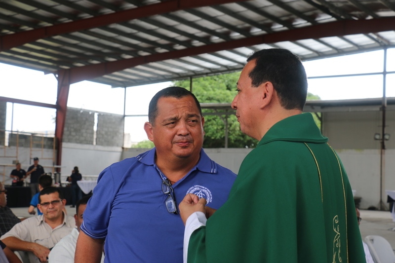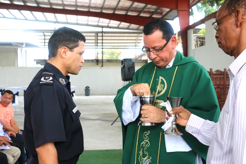 Con muestras de cariño y una misa de acción de gracias, el Capellán de la Policía Nacional, Edgar Flores, celebró su cumpleaños junto a miembros de Directorio Nacional de la Policía. La misa se llevó a cabo este sábado 31 de octubre, en las instalaciones de la institución en Ancón. El Capellán Flores dijo sentirse complacido con el Director General de la Policía Nacional, Omar Pinzón, y todas las unidades policiales quienes acudieron junto a sus esposas e hijos a cantarle su cumpleaños y participar de la misa en acción de gracia por un año más de vida. "Me siento bendecido. Será una de las misas más especiales de mi vida, quiero agradecer a Dios, por formar parte de una gran comunidad que aporta a la seguridad y protección de todo un país como lo es la Policía Nacional", dijo el agasajado. Integrantes de la orquesta de la Policía Nacional también se hicieron presentes y le cantaron el tradicional canto "Amigo" de Roberto Carlos, Tu eres mi hermano del alma realmente un amigo que en todo camino y jornada este siempre conmigo aunque eres un hombre a un tienes alma de niño, aquel que me dé su amistad, su respeto y cariño… Al finalizar la misa se partió un gran pastel, del cual degustaron los presentes. Desde niños hasta personas mayores esperaron pacientes su turno para darle un abrazo y un obsequio al Capellán. |