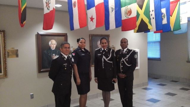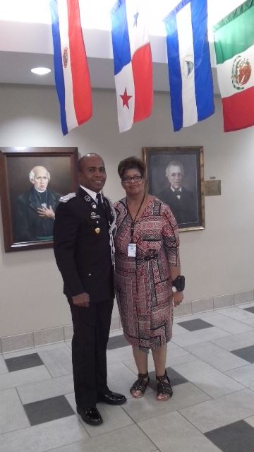 Con fervor patriótico, panameños que cursan estudio de Estado Mayor en Los Estados Unidos le rindieron honor a la patria este 3 de Noviembre. Los oficiales entre Subcomisionados, mayores y sargentos de la Policía Nacional, del Servicio Nacional de Fronteras (Senafront) y Servicio Aéreo Naval (Senan), hicieron un alto en sus estudios en el Instituto de Cooperación para la Seguridad Hemisférica (Whinsec) y destacaron en una pequeña ceremonia el significado del 3 de Noviembre de 1903 fecha en que se cumple 112 años de la separación de Panamá de Colombia. El Subcomisionado Simón Henríquez quien se encuentra realizando estudios en Estados Unidos en su discurso de fondo, destacó la importancia de esta fecha y la responsabilidad de Panamá como nación en estos 112 años. Se trata de siete panameños, quienes presentaron videos que muestran nuestras culturas y sitios históricos y entregaron a los presentes artesanías y banderas para que tuvieran de recuerdo de esta fecha. |