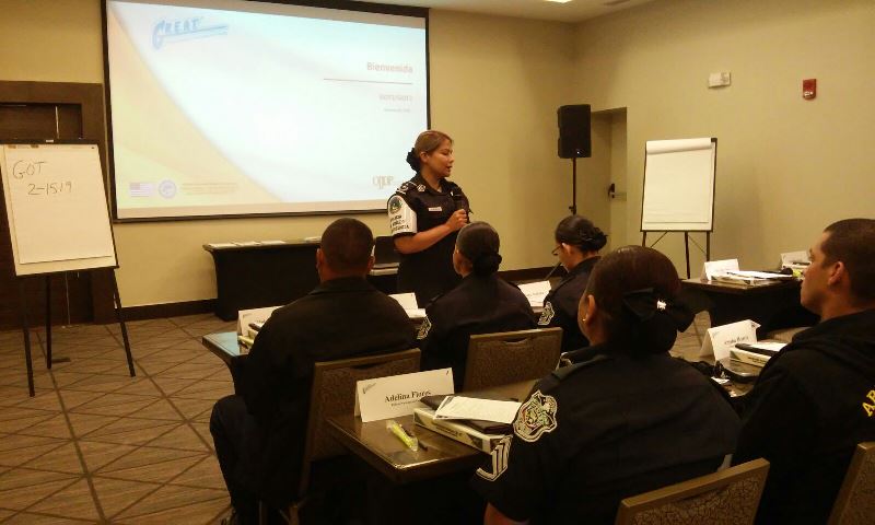 Cada día son más las unidades de la Policía Nacional que se capacitan en el Programa de Educación y Entrenamiento en Resistencia a las Pandillas (GREAT), para convertirse en entes multiplicadores. Este programa es impulsado por el gobierno de Estados Unidos, a través de la Sección de Asuntos Internacionales Antinarcóticos y Aplicación de la Ley, y la Policía Nacional. El objetivo es reforzar el trabajo preventivo que se realiza a diario para que los jóvenes no consuman drogas e incursionen en los grupos delincuenciales. La capacitación fue recibida por 40 unidades policiales de diferentes zonas, dependencias de la Policía Nacional a nivel de todo el país, entre ellas de la Unidad Preventiva Comunitaria (UPC) de Samaria, unidades de la Policía del Tránsito. Además se contó con la participación de tres unidades policiales del Servicio Nacional Aeronaval (SENAN). Esta preparación se basó en planes de estudios enseñados en las aulas de centros educativos por agentes de la Policía Comunitaria, Policía de Niñez y Adolescencia, entre otras unidades policiales quienes se encargan de capacitar a alumnos, maestros, y padres de familia. La Subcomisionada y Jefa de la Policía de Niñez y Adolescencia, Aida Villarreal dijo que estas capacitaciones no solo fortalecen a la Policía, si no que ellos serán los capacitadores del mensaje, para brindar una mejor respuesta a la ciudadanía. |