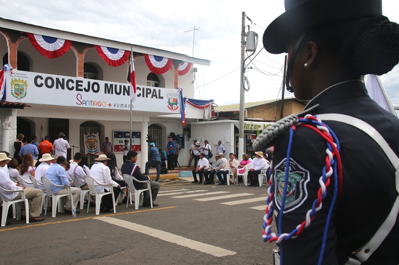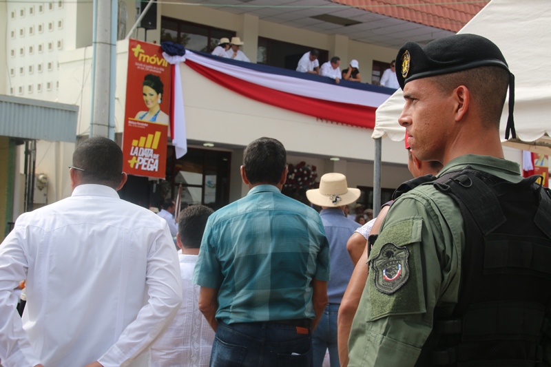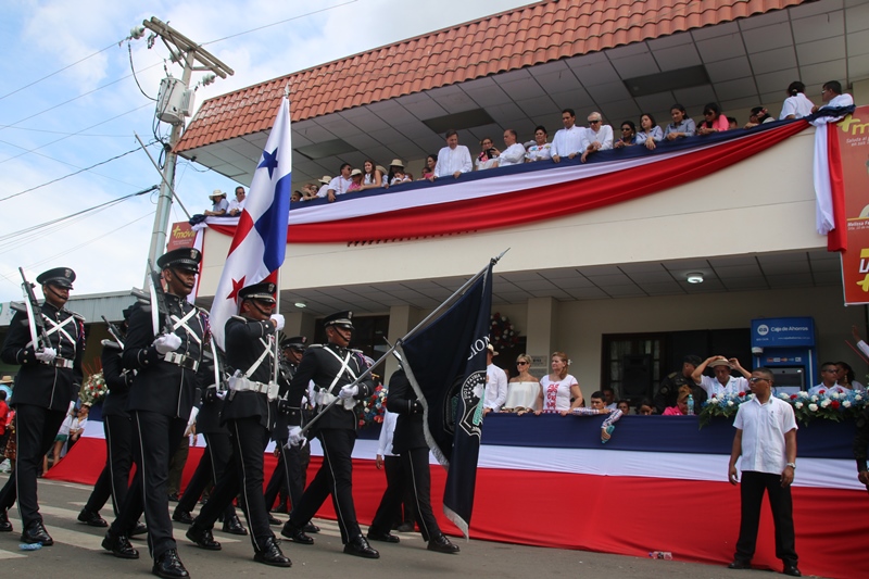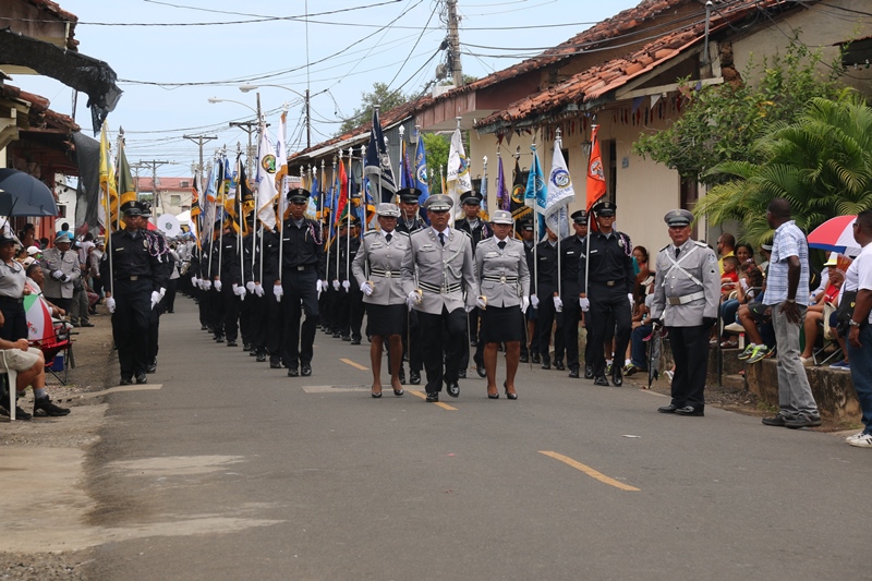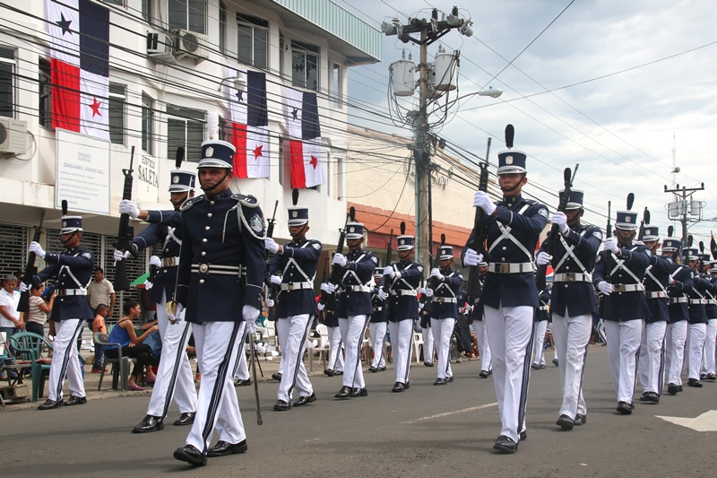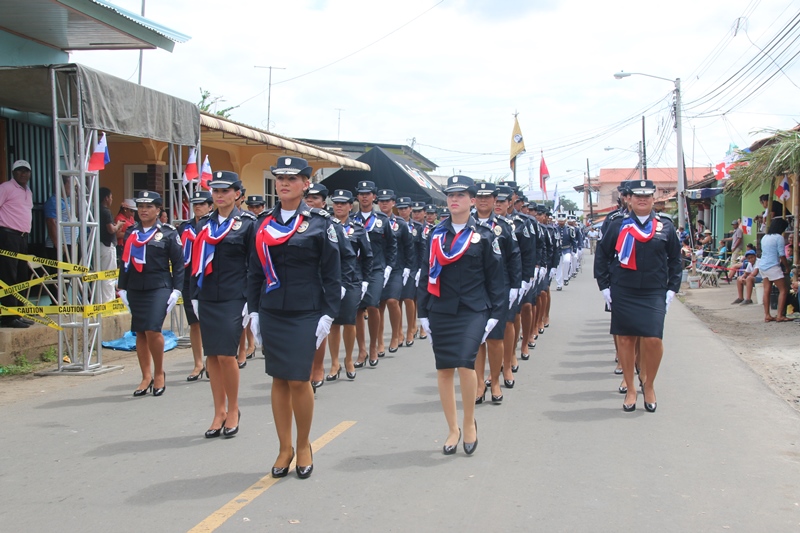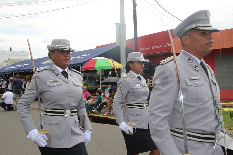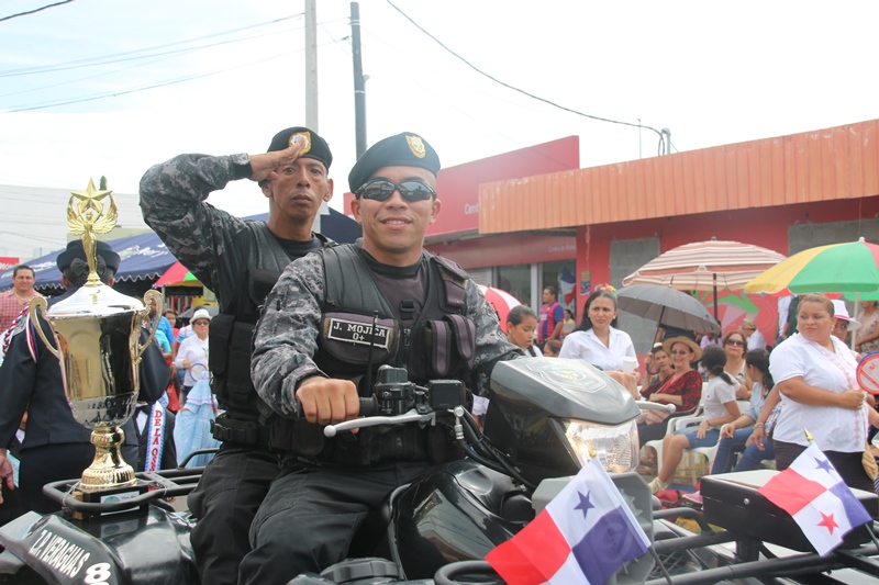 Con mucho fervor patriótico, la Policía Nacional se unió al pueblo de Santiago de Veraguas y La Villa de Los Santos, donde se celebraba el “Grito de Independencia”. Y es que precisamente en Santiago donde se celebraba el “Grito de Santiago”, se reconoció la labor en beneficio del país y de la provincia de Veraguas del Director General de la Policía Nacional, Omar Ariel Pinzón por parte del Municipio de Santiago. Fue el comisionado Gilberto Cuevas, quien recibió este reconocimiento en nombre del Director General, a quien se le concedió esta distinción por haber dedicado su vida para servir a todos los ciudadanos de este país y por el valioso trabajo realizado en beneficio de la sociedad veragüense. A su vez La Orquesta Mayor de esta entidad de seguridad, amenizó la apertura al Cuarto encuentro de Dianas en celebración al 9 noviembre, festividad donde los santiagüeños realzan sus raíces y ratifican su amor a la patria. Y porque los sueños se hacen realidad, unidades de la Policía Nacional con sede en Veraguas, distinguieron al joven con capacidades especiales Jairo Chon, de 38 años de edad, quien tenía el anhelo de ser parte de esta institución de seguridad, concediéndole tal deseo, y uniformándolo de Lince, uniforme que portó con mucho orgullo. Los santiagueños se reunieron en la plaza que se encuentra en las inmediaciones de la Catedral, para presenciar el encuentro entre las orquestas de la Policía Nacional y el Servicio Nacional Aeronaval, quienes interpretaron contagiosas melodías. Las orquestas dieron espacio al sonar del clarín y el sonido del redoblante de la banda de proteger y servir, para que con las clásicas Dianas del 10 de noviembre en la Villa de los Santos, celebraron este hecho histórico. Las unidades de la Policía Nacional tuvieron una participación extraordinaria en los desfiles llevados a cabo en Santiago de Veraguas, el pasado 9 de noviembre día que se celebró el Grito de Santiago. La escolta de bandera, seguido de encargado de la delegación y sus edecanes, los banderines, banda de música, batallón femenino y de cadetes de la Escuela de Oficiales de Policía (ESOPOL) y los niños del Centro Orientación Infantil (Coif), mostraron los resultado de meses de prácticas y aquel “amor a la Patria”. Lo mismo hicieron el 10 de noviembre “Grito de la Villa de Los Santos”, donde se encontraba el Presidente de la República y el Gabinete en pleno. Allí, el jefe de la Zona de Policía de Los Santos Frank Pinilla, recibió al Mandatario de la República, acompañándolo hasta el palco. Con la ovación del pueblo de la Villa y la alegría que los caracteriza, recibieron la delegación de la Policía Nacional, quienes a pesar del inclemente sol mostraron disciplina y fervor a la Patria. En ambas festividades hubo permanente vigilancia tanto en las vías de acceso a las provincias, como en las rutas de los desfiles, preservando el orden y la tranquilidad de quienes asistieron a celebrar de estas actividades en honor a la patria. |