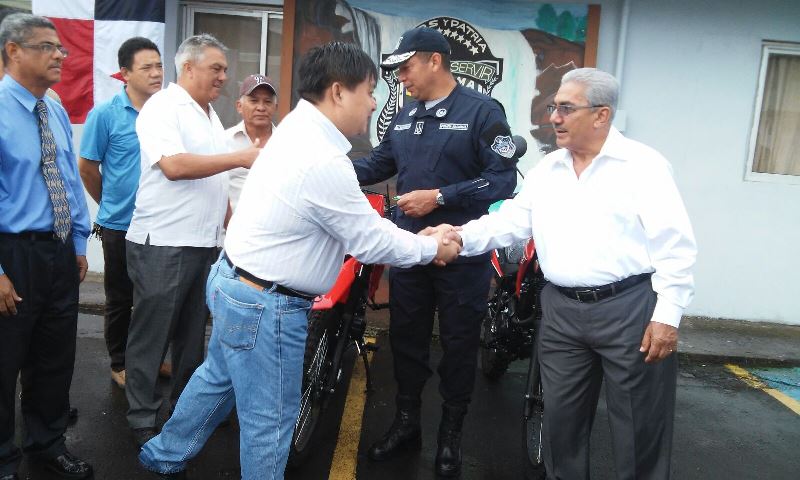 Con el objetivo de apoyar el trabajo preventivo que realiza la Policía Nacional en los comercios ubicados en Panamá Oeste, la Asociación China Capitulo del distrito de La Chorrera entregó dos motocicletas, que formarán parte del equipo rodante de la 10ma. Zona Policial. El Comisionado y jefe de la zona policial, Gilberto Samaniego agradeció al presidente de la Asociación China capítulo de La Chorrera, Eloy Chong y demás miembros de esta asociación por esta contribución, que facilitará el desplazamiento de los efectivos por las diversas áreas comerciales y residenciales de este creciente distrito.