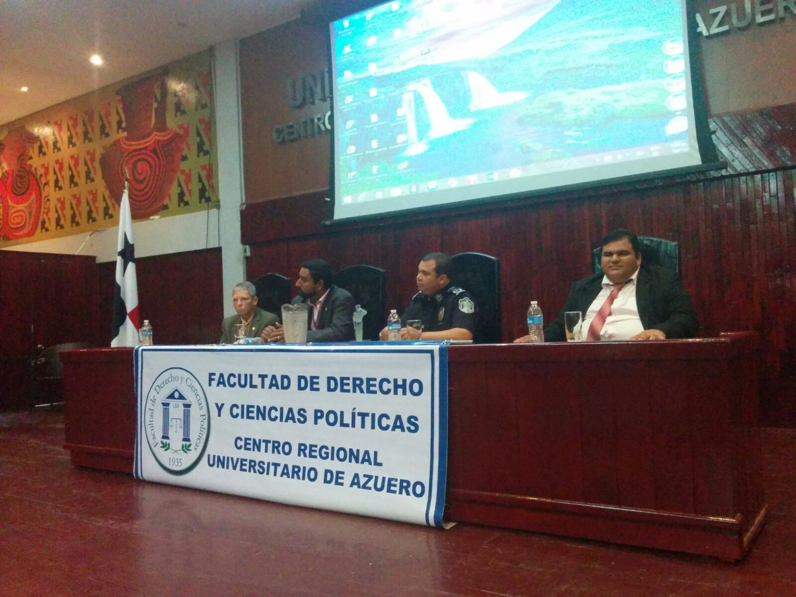 Junto a jueces, fiscales y docentes el jefe de la Zona de Policía de Herrera, Ismael Herrera participó como expositor en la conferencia organizada por estudiantes de la Facultad de Derecho y Ciencias Políticas del Centro Regional Universitario de Azuero. El comisionado Ismael Herrera, jefe de la Zona de Policía de Herrera, se dirigió a todos los estudiantes compartiendo los conocimiento en la materia, así como sus experiencias. La conferencia se realizó en el salón Auditorio del Centro Regional; Universidad Nacional, ubicado en Herrera, la cual fue un éxito, donde también tuvieron participación otros profesionales del Ministerio Publico y de Órgano Judicial. |