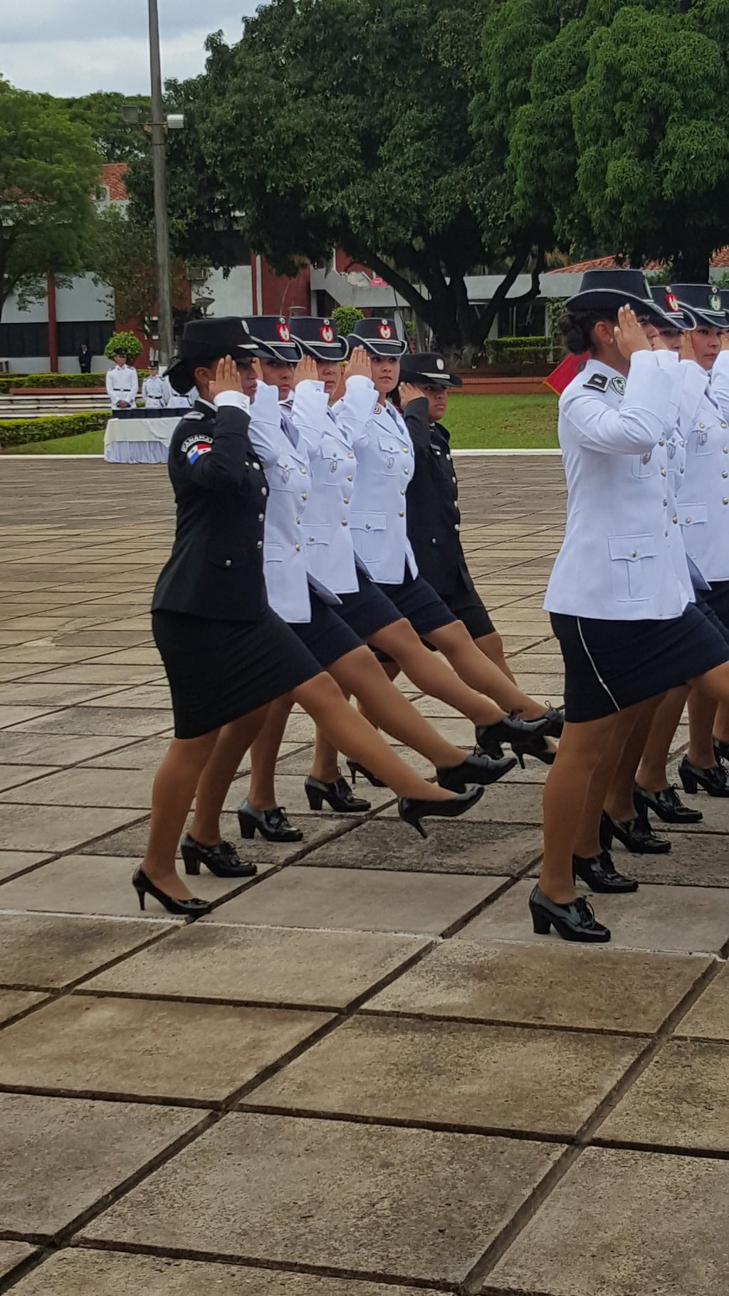 La cadete panameña Angelie Nair Quinn Chiu ocupó el primer lugar femenino en la Promoción 64ª de Oficiales Ayudantes de Orden, Seguridad y de Intendencia de la Policía Nacional, Academia de Policía de Paraguay. Queen Chiu es becaria panameña en Paraguay y por su desempeño en este país fue reconocida como “Mejor Egresada en Escalafón Femenino Of. Aydte. de Orden y Seguridad”. Junto a Quinn Chiu se encuentra Estela Teresita Aizprúa Duatye, ambas becadas desde el 2013 en ese país. Este acto se llevó a cabo en el Patio de Honor de la Academia Nacional de Policía “Gral. José Eduvigis Díaz”, ubicado en Ñu Guasú (Luque) en Paraguay, donde egresaron 127 oficiales (97 hombres y 30 mujeres) y 2 becarias panameñas. De acuerdo con la página electrónica del Ministerio del Exterior de Paraguay, los egresados recibieron formación profesional técnica, científica y táctica durante tres años, proporcionándoles conocimientos y habilidades que contemplan los estándares relacionados con los nuevos paradigmas de la seguridad ciudadana democrática. Resultó mejor egresado de la promoción el Of. Aydte. de Orden y Seguridad Abdo Ramón Galeano Cuellar y mejor egresada en escalafón femenino Of. Aydte. de Orden y Seguridad Angelie Nair Quinn Chiu. |