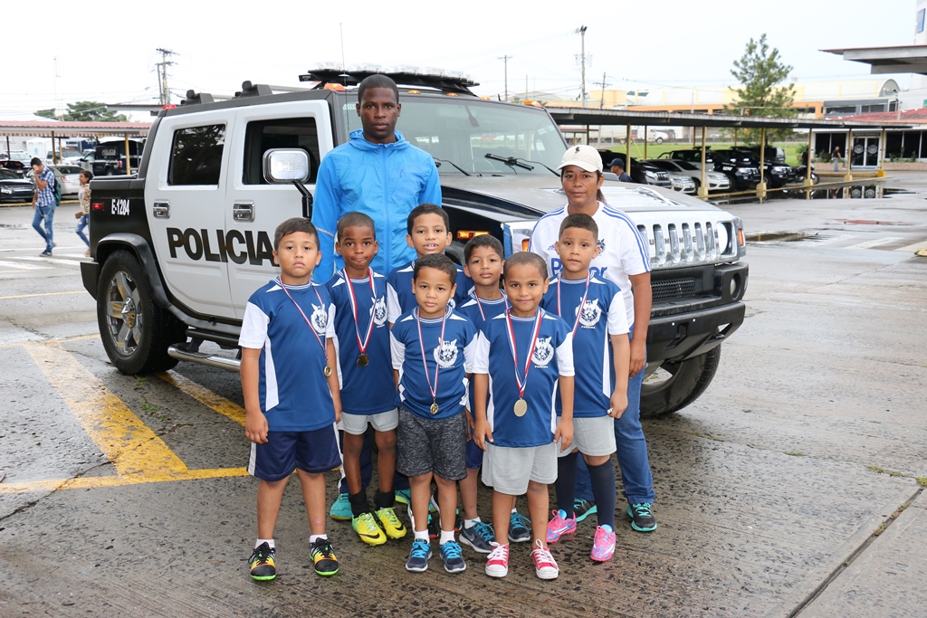 Estudiantes de la Escuela del S.D. Atlético Nacional en Tocumen visitaron las instalaciones de la Policía Nacional en su sede ubicada en el corregimiento de Ancón, luego de coronarse campeones en la copa de fútbol juvenil. La delegación conformada por siete niños, visitaron varios departamentos y despachos de la entidad policial, entre estos el despacho del Director General, Omar Ariel Pinzón Marín. Los infantes con su característica inocencia llenaron de risas y travesuras la Policía Nacional, dieron un paseo por las instalaciones en los vehículos policiales, para luego salir a un almuerzo a un restaurante de comida rápida. |