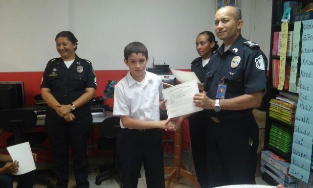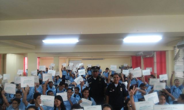 La 7ma Zona Policía de Los Santos culminó con éxito la capacitación de aproximadamente 204 niños, en el programa G.R.E.A.T (Educación y Entrenamiento en Resistencia a las Pandillas), en centros educativos del distrito de La Villa y escuelas primarias de Las Tablas. En La Villa se capacitó 170 niños del Instituto Coronel Segundo de Villarreal y en el distrito de Las Tablas unos 34 estudiantes de las escuelas primarias El Muñoz y Plinio Tejada del Carate. Los centros escolares beneficiados con la capacitación recibieron con interés desde el primer momento el Programa G.R.E.A.T. en sus planteles, lo que servirá de apoyo a todos aquellos jóvenes a tomar decisiones. La Magister Graciela Tejedor, Sub-Directora del Instituto Coronel Segundo de Villarreal agradeció a la Policía Nacional por el tomar en cuenta este plantel, ya que es de suma importancia para los educandos. De igual forma lo hicieron los maestros Rudilia Alfaro de la Escuela El Muñoz y Jorge Iván Domínguez de la Escuela Plinio Tejada del Carate. |