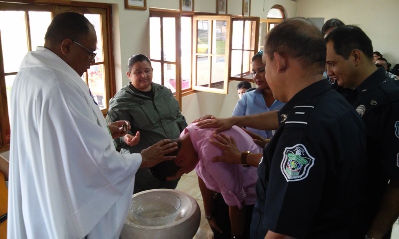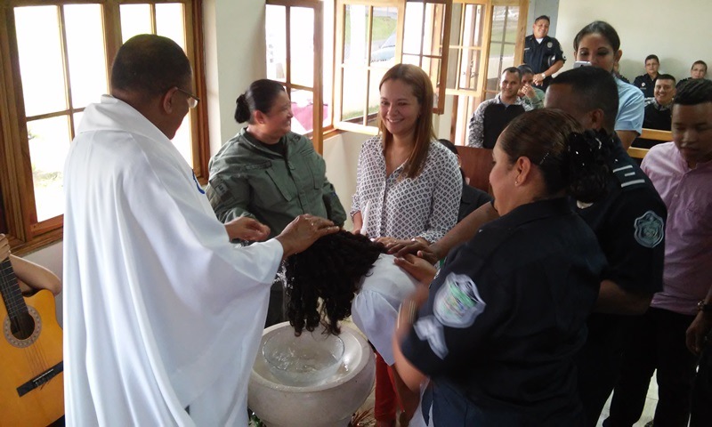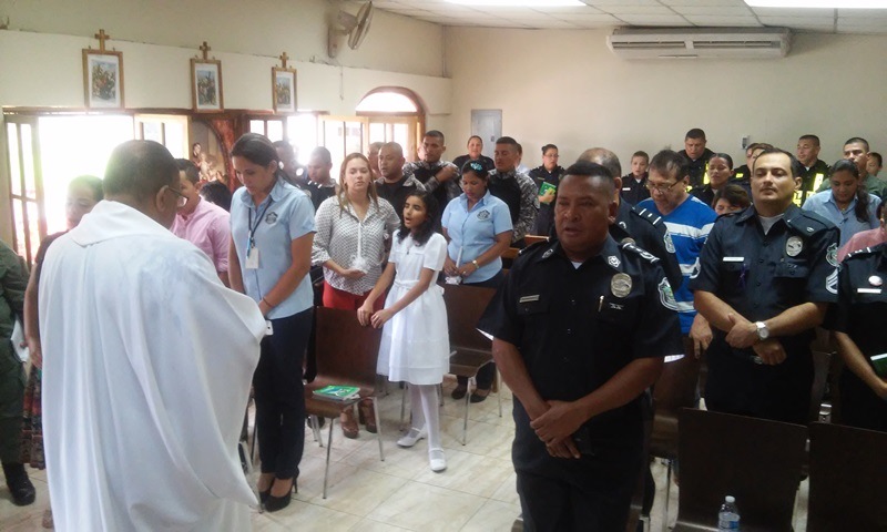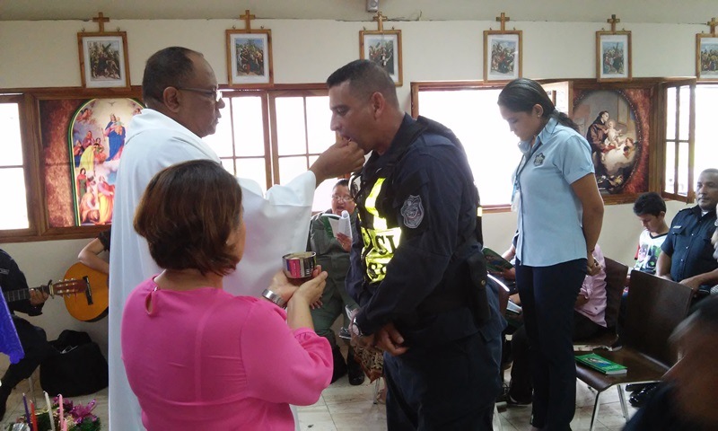 Con una misa de acción de gracias, unidades de la zona policial de Chiriquí, realizaron la bendición de la Corona de Adviento, en la Capilla San Antonio de Padua. La misa fue dirigida por el Padre Heriberto Ríos, Capellán de esta zona policial, donde los hijos del personal juramentado y no juramentado aprovecharon la ocasión para recibir el primer sacramento del bautismo. La semana de inicio de los tiempos de Advientos se lleva a cabo el primer domingo del mes de diciembre, en preparación de la Navidad y en la corona se colocan cuatro velas, una de color azul que representa el espíritu de la vigilia, una vela verde que simboliza la esperanza, una rosada que da la alegría y la vela amarilla es el color de la presencia luminosa de Dios que se van encendiendo domingo tras domingo, en el marco de una oración. En esta actividad estuvieron presentes el Comisionado Rene Herrera, ejecutivo de la zona y el Subcomisionado Alfredo Icaza, encargado del departamento de Operaciones de Transito en la provincia de Chiriquí. |
