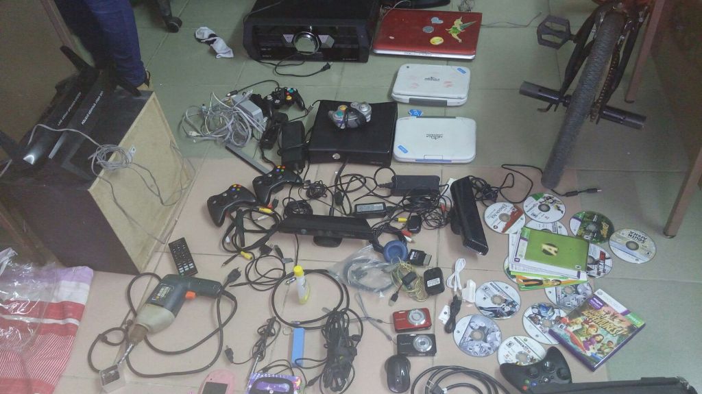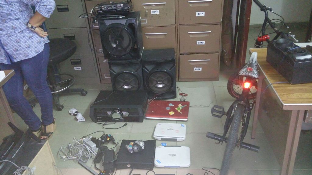 En coordinación con las autoridades del Ministerio Público se procedió a realizar una inspección en la residencia del detenido ubicada en el corregimiento de El Chorrillo, encontrando un sinnúmero de evidencias, entre estas: joyas, línea blanca, equipos de sonido, celulares, laptop, relojes y mucho más.