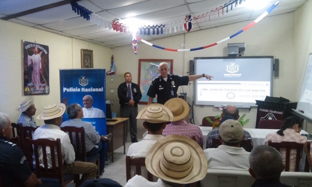 La Zona de Policía de Los Santos da inicio al proyecto de Docencia a los Ganaderos Vigilantes del Distrito de Las Tablas, tratando temas de importancia, como el Código Administrativo y el Código Penal, las modalidades utilizadas por los cuatreros para el traslado del ganado hurtado. En primera instancia se organizó la Junta Directiva, luego se dictó la docencia, haciéndoles conocedores que el Programa de Ganaderos Vigilantes se estará extendiendo a los 200 ganaderos organizado. Fueron recibidos por el Comisionado Franck Pinilla Jefe de la Zona, la docencia estuvo a cargo del Licenciado Gustavo de Arco, Asesor Legal de la Zona. Estaban presentes los Encargados de Áreas y personal de la DIP, DIJ y Departamento de Seguridad Ciudadana. |