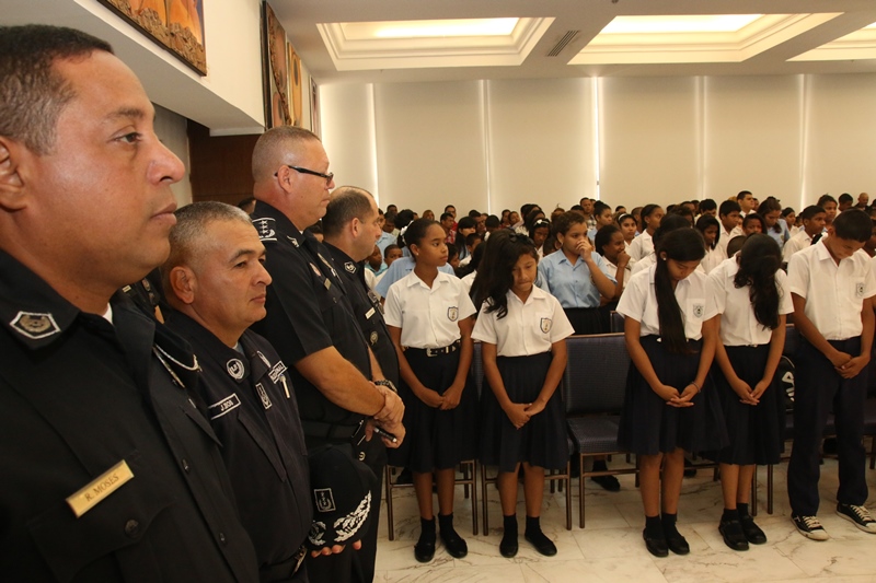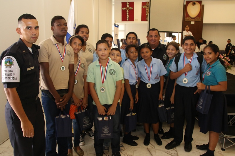 Aproximadamente 203 niños y jóvenes de varios centros educativos de Colón, Panamá Oeste, San Miguelito, Panamá y Chepo, culminaron con éxito su capacitación en los programas de Educación y Entrenamiento en Resistencia a las Pandillas (G.R.E.A.T) y Prevención de Educación para la Resistencia al Uso y Abuso de las Drogas y la Violencia (D. A.R.E.), que desarrolla la Policía Nacional. “La Policía Nacional está luchando por un Panamá mejor, teniendo como camino la prevención, alejando a los jóvenes y niños de las drogas y otros peligros”, dijo el Director General de la Policía Nacional, Omar Ariel Pinzón Marín, quien a su vez felicitó a los instructores por este esfuerzo, durante la ceremonia de graduación realizada en el salón de eventos del Tribunal Electoral. En este evento estuvo presente el viceministro de Seguridad Pública, Rogelio Donadío, la licenciada Iris Amaya, de la escuela República de Venezuela, miembros del Directorio Nacional Policial e invitados especiales. Por su parte, el viceministro de Seguridad Pública Rogelio Donadío instó a los presentes a seguir los consejos brindados para tomar buenas decisiones que les ayudará a tener un mejor futuro. Mientras que el cabo segundo Jonathan Canto, uno de los instructores se mostró satisfecho por la labor realizada por las unidades del Servicio de Niñez y Adolescencia, quienes sirvieron de guía a los niños y adolescentes panameños. La niña Denis Ortega agradeció a la Policía Nacional por las enseñanzas recibidas, que serán muy útiles en su formación académica y personal. La educación y orientación oportuna en los niños y jóvenes, es una de las estrategias trazadas por la Policía Nacional a través del Servicio de Policía de Niñez y Adolescencia, que mantiene presencia en los centros educativos del país, llevando ese mensaje de prevención con charlas, volanteos y diversos programas. Este grupo de niños y jóvenes representan a los 15 mil 812 estudiantes que este año han sido capacitados, convirtiéndose en agentes multiplicadores de cambio en sus planteles. La subcomisionada y jefa del Servicio de Policía de Niñez y Adolescencia, Ayda Villarreal de Jaén expresó que cada año se preparan a más policías para ser instructores debidamente capacitados para orientar a los estudiantes a nivel primario y secundario. “La constante visita a los centros educativos y el acercamiento con los alumnos es fundamental para el éxito de nuestros programas, que han sido muy beneficiosos para el desempeño escolar de los que han participado”, manifestó Villareal. Durante la ceremonia se entregaron medallas y obsequios a los chicos, a manera de premio por haber culminado su capacitación, mientras que algunas de las estudiantes demostraron su talento en poesía, oratoria y canto a ritmo de saloma, todos alusivos a estos programas. Mediante estos programas impartidos por módulos en periodos de 6 semanas a tres meses se le enseña a los estudiantes, a resistir a las pandillas, presión de grupo, acoso escolar y a las drogas, además de fortalecer su autoestima. |