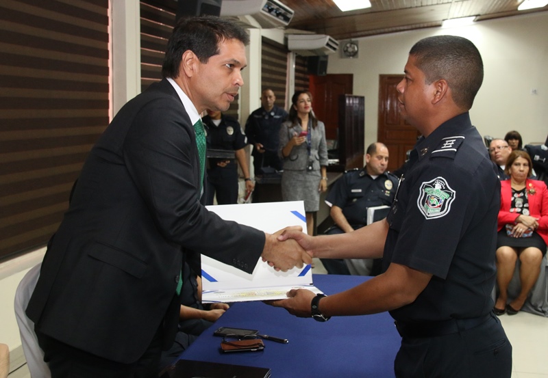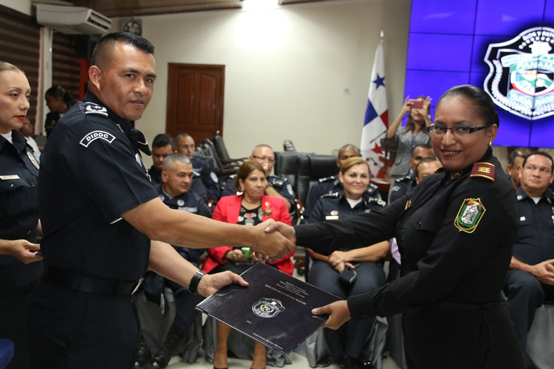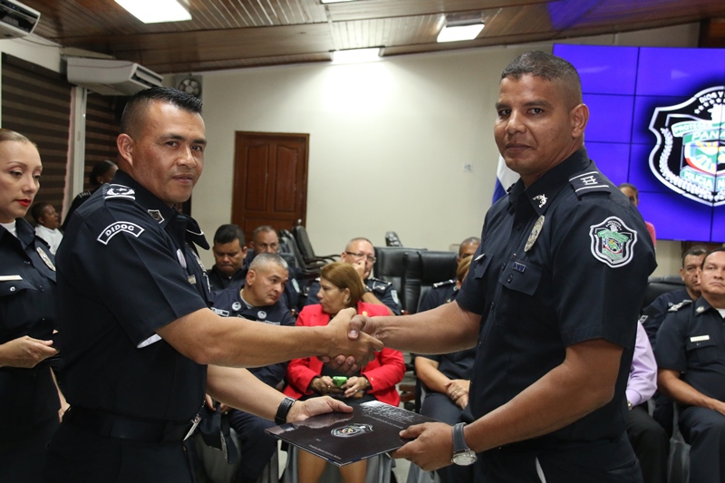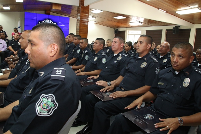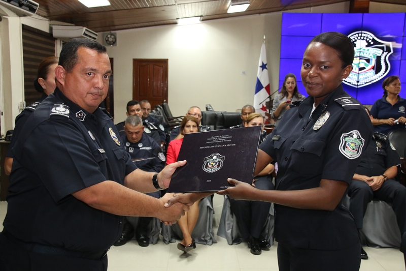 Unos 40 oficiales con el rango de capitanes, culminaron satisfactoriamente el Diplomado en Plana Mayor que le permite ascender al rango superior inmediato, como parte del proceso de capacitación que realiza la Policía Nacional a través de la Dirección Nacional de Docencia. Fueron seis meses de capacitación en las instalaciones de la Escuela de Oficiales de Policía (ESOPOL), en temas como desarrollo institucional, gestión del recurso humano, tácticas policiales, derechos humanos y el Sistema Penal Acusatorio que pronto entrará a funcionar en la provincia de Panamá, Colón y Comarca Guna Yala. El Director General de la Policía Nacional Omar Ariel Pinzón Marín estuvo presente en la graduación y tuvo palabras de elogios para los oficiales en el plano profesional. "Ustedes tienen la oportunidad de llegar lejos donde no todos logran mantenerse en el rango de Mayor" destacó Pinzón Marín. También instó a las unidades a ser mejores cada día, a portar el uniforme y la placa con honor, con orgullo, donde puedan decir "aquí estamos, esta es tú policía". En el acto estuvo presente el Viceministro de Seguridad Pública, Rogelio Donadío, manifestó que la Policía Nacional es una institución con hombres y mujeres que dan hasta su propia vida por su país y eso es sentirse orgulloso de lo profesional y servicial que ha logrado llevar el director Omar Pinzón a este estamento de seguridad. De las 40 unidades que se capacitaron, dos pertenecían al Servicio de Protección Institucional (SPI). |
