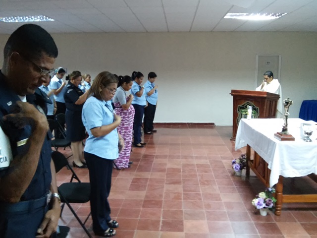 Con una misa de Acción de Gracias, unidades policiales y personal no juramentado de la Zona de Policía de Herrera se preparan espiritualmente para celebrar las fiestas decembrinas y recibir al año 2016. En esta ceremonia religiosa que fue realizada en el Salón de Conferencias de la sede policial y precedida por el presbítero Daniel Mora, capellán de la zona policial los presentes elevaron plegarias al Altísimo para pedir salud, entre otras bendiciones. Aquí el padre Mora, hizo un llamado a que estas festividades sean aprovechadas para cumplir metas que fortalezcan el espíritu, como lo es perdonar, compartir y ser solidarios con los demás.