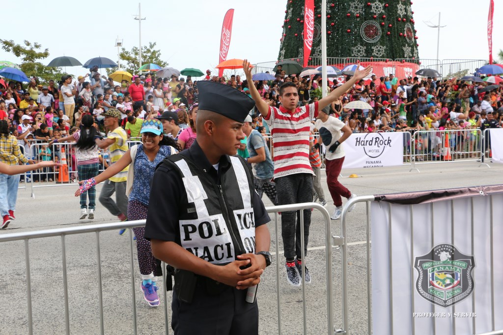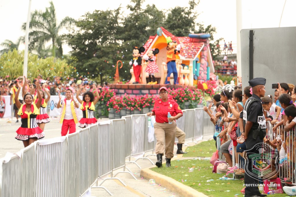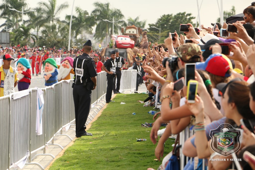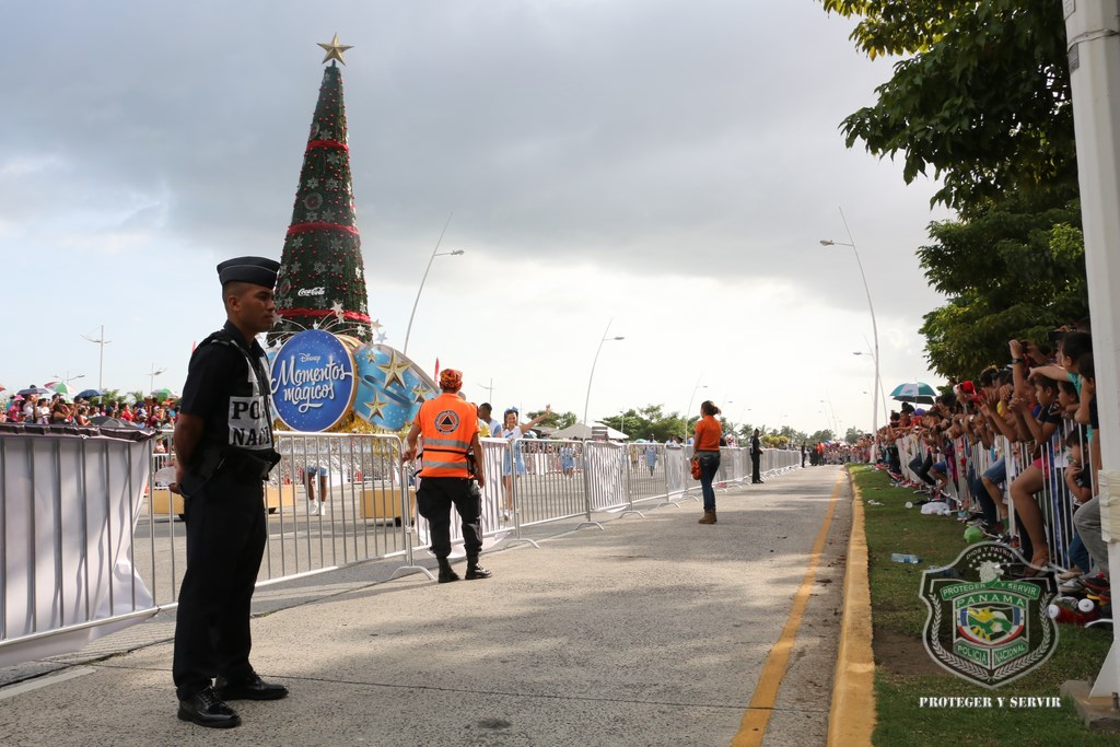 Por primera vez llegó a Panamá el desfile "Disney Momentos Mágicos", evento de ingreso gratuito que llenó de alegría a panameños y turistas, motivo por el cual la Policía Nacional puso en marcha su plan de seguridad en la Cinta Costera desplegando unas 2, 500 unidades a lo largo y ancho del desfile. Este trabajo permitió que miles de panameños y extranjeros disfrutaran del evento organizado por la Alcaldía de Panamá. El Director General de la Policía Nacional, Omar Ariel Pinzón Marín dijo que todas las unidades que forman la entidad de seguridad, se concentraron en la seguridad y vigilancia, pero con especial atención en las cercanías de los niños, velando para que sus padres no los pierdan de vista. El presidente de la República, Juan Carlos Varela Rodríguez, realizó un recorrido junto al director de la Policía Omar Pinzón, compartiendo con el pueblo panameño que se dio cita en la Cinta Costera a presenciar el evento más grande de Navidad que primera vez llega a Panamá y Centroamérica. El plan de seguridad arrancó con la inhabilitación del tránsito vehicular en las calles residenciales y principales vías hacia la Avenida Balboa, con la finalidad de habilitar el acceso para el público que apreció los desfiles. Las ocho entradas de acceso al desfile estuvieron custodiadas por la Policía Nacional, quienes se encargaron de la revisión a los asistentes, evitando el ingreso de armas u otros objetos de metal, artículos punzocortantes, bebidas alcohólicas y botellas de vidrio entre otros. El Director General Omar Pinzón en compañía de miembros del directorio de la entidad realizó un recorrido, en los varios de los puntos de encuentro, donde dialogó con los encargados de la seguridad, supervisando de esta de forma que todo se desarrollara en orden y tranquilidad. En tanto las unidades de la Policía de Niñez y Adolescencia estuvieron al pendiente que los padres de familia no perdieran de vista a sus hijos. |
