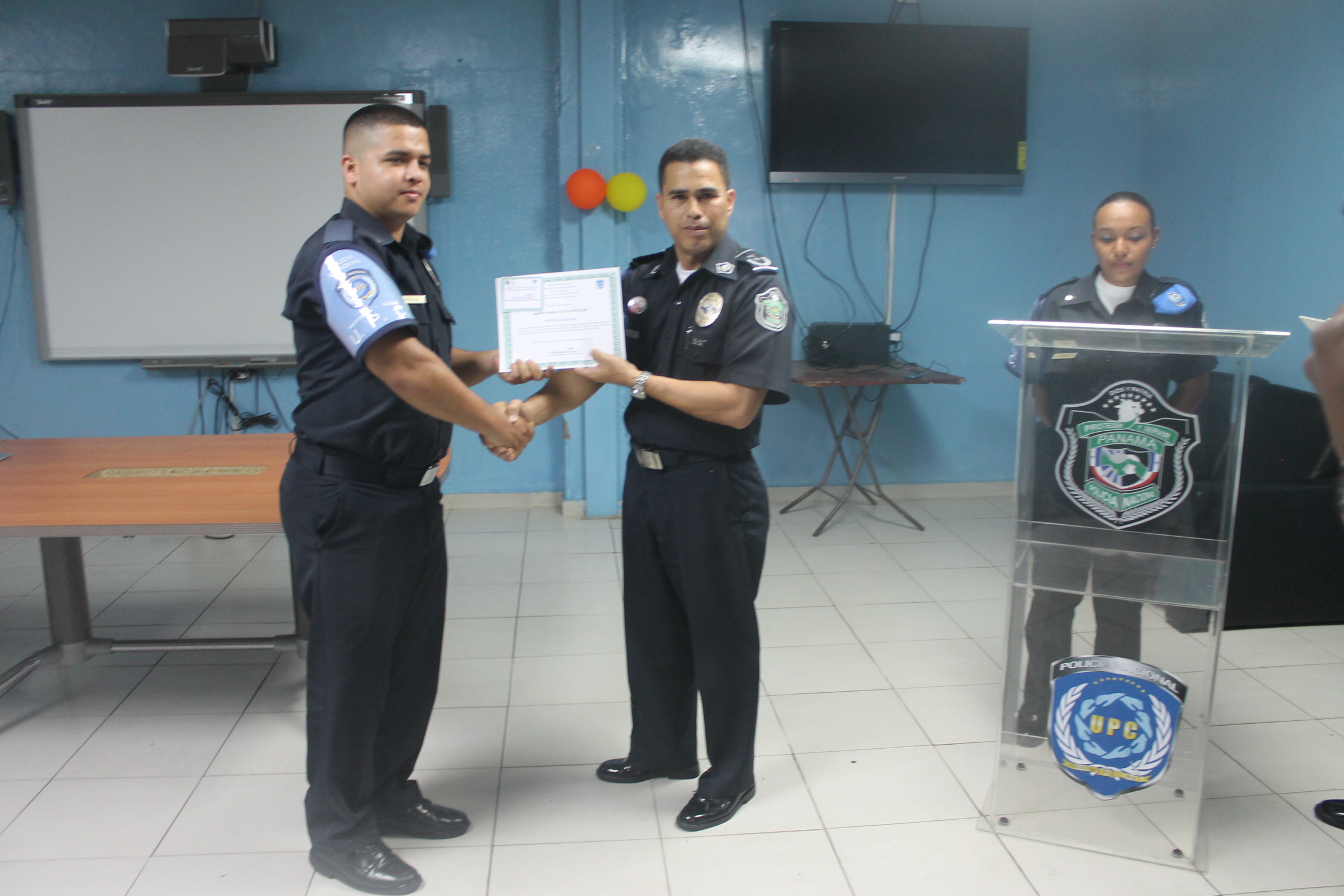 Al son de las dianas interpretadas por la banda de la Policía Nacional, inició este jueves 10 de diciembre la celebración del 3er. aniversario de la Unidad Preventiva Comunitaria (UPC) de la Policía Nacional en Curundú. Las unidades celebraron con un desayuno y una misa que se llevó a cabo en la iglesia Marie Poussepine. Las actividades continuaron con un convivió deportivo entre la UPC Curundú y la UPC Chorrillo, en la cancha sintética de las Torres Amarillas en Curundú, donde estuvo presente el Director General de la Policía Nacional, Omar Ariel Pinzón Marín. El jefe policial felicitó a todas estas unidades que componen la UPC de Curundú por este aniversario, a la vez, los instó a seguir con la labor de “proteger y servir” a la comunidad. Posteriormente en las instalaciones de la UPC, se reconoció la labor de las unidades con canastillas a las femeninas embarazadas y luego se le cantó el cumpleaños a unas unidades. La Policía Nacional a través de la UPC organiza y desarrolla actividades que procuran la convivencia pacífica de los ciudadanos. |