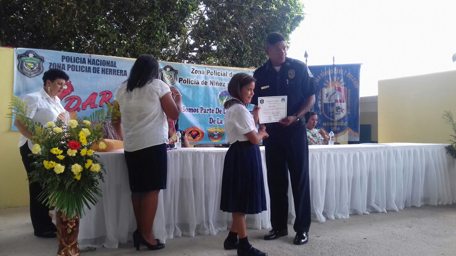 Unos 137 estudiantes de la escuela primaria de Monagrillo recibieron certificado del programa DARE (Resistencia al Uso y Abusos de Drogas), que lleva adelante la Policía Nacional a través de Niñez y Adolescencia en la provincia de Herrera. Este es el segundo plantel educativo donde estudiantes se gradúan en este programa preventivo, con el objetivo de alejar a los jóvenes de los malos vicios y fortalecer sus valores. El acto estuvo el Subcomisionado Rogelio Villa Corbin, ejecutivo de la zona en representación del Comisionado Ismael Herrera. Corbin dijo estar satisfecho con el desarrollo de este programa preventivo, al tiempo que felicitó a todos los estudiantes que recibieron sus certificado y a los docentes del centro de enseñanza. Cabe señalar que en acto también estuvieron autoridades de la provincia y funcionarios del ministerio de educación, compartiendo con los graduandos. |