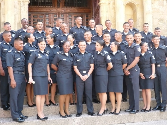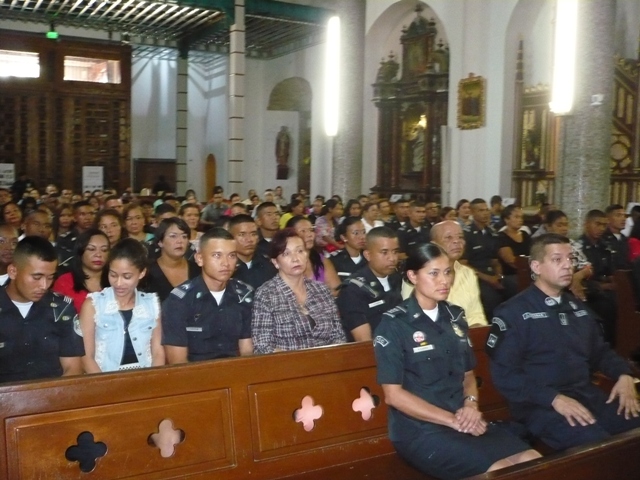 En una emotiva ceremonia en la Iglesia de La Merced, unos 45 alféreces de la Escuela de Oficiales de Policía, Dr. Justo Arosemena (Esopol), de la Policía Nacional recibieron sus anillos de graduación por parte de sus padres y hermanos. Estos futuros oficiales que pronto recibirán su título universitario y sus sables, estuvieron acompañados por familiares quienes le hicieron entrega del anillo que representa esa entrega, ese pacto entre su patria y la Policía Nacional. En la ceremonia estuvo presente en representación del Director General, Omar Ariel Pinzón Marín, el Comisionado Jorge Escobar, Director Nacional de Docencia, quien les recordó quienes son en estos momentos y su responsabilidad que tienen ante su nación. El Comisionado Escobar también agradeció a los padres de familia su confianza y sus desprendimiento del tesoro más valioso que tiene todo padre que es su hijo y entregarlo para que sirva a su país. Los alféreces que están próximos a recibir sus diplomas y sables, pertenecen a la promoción 14 de la Escuela de Oficiales de Policía (Esopol). |