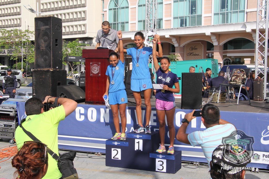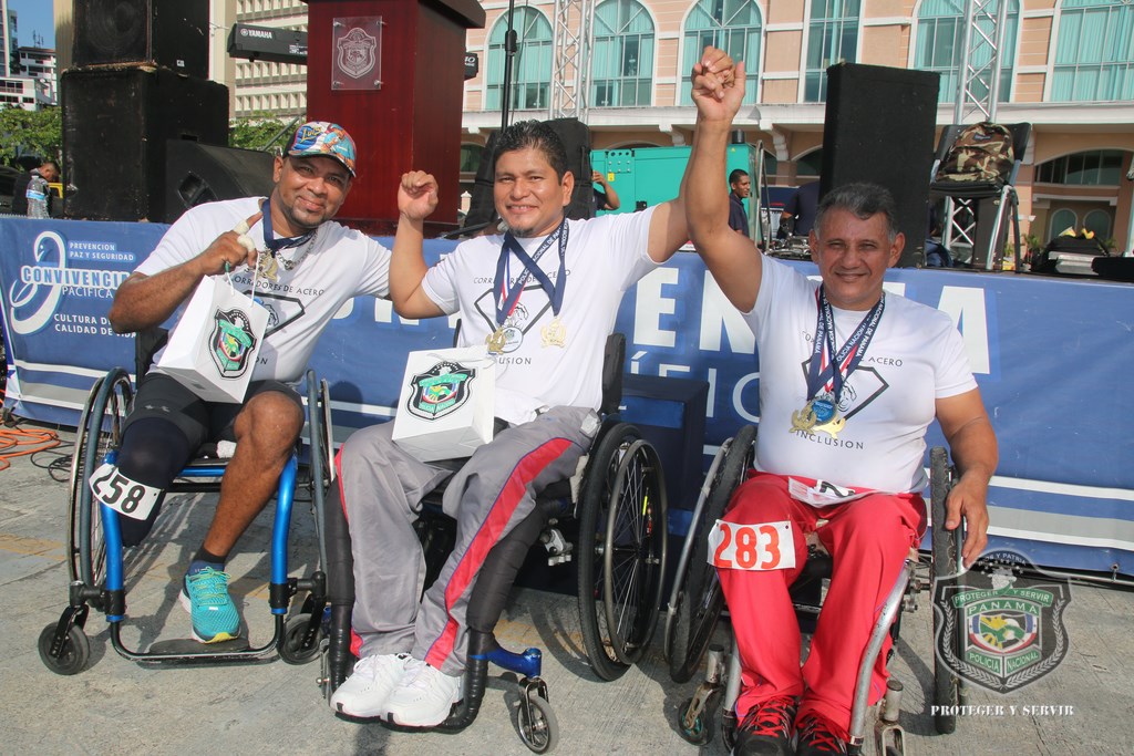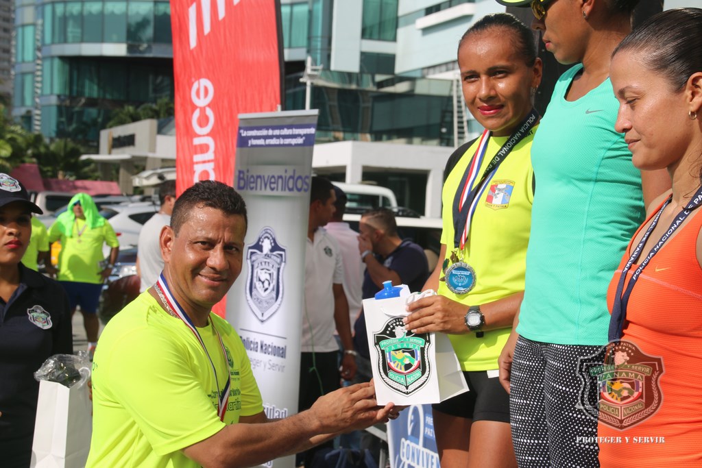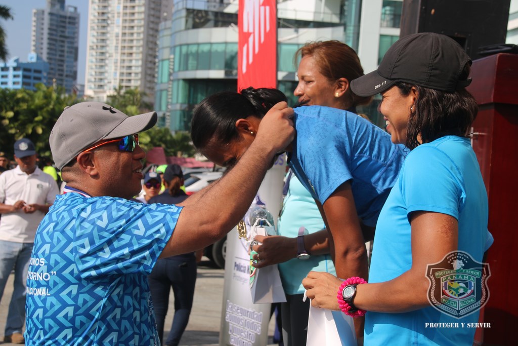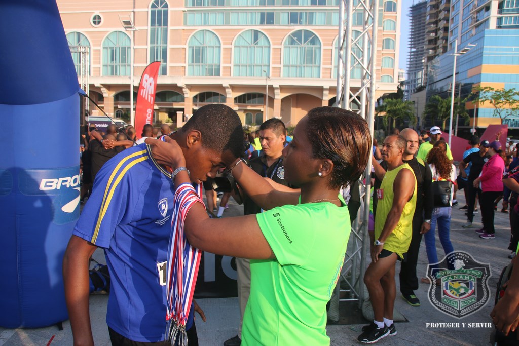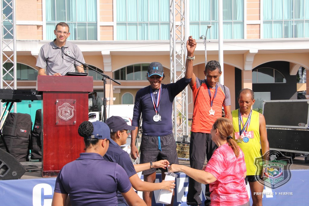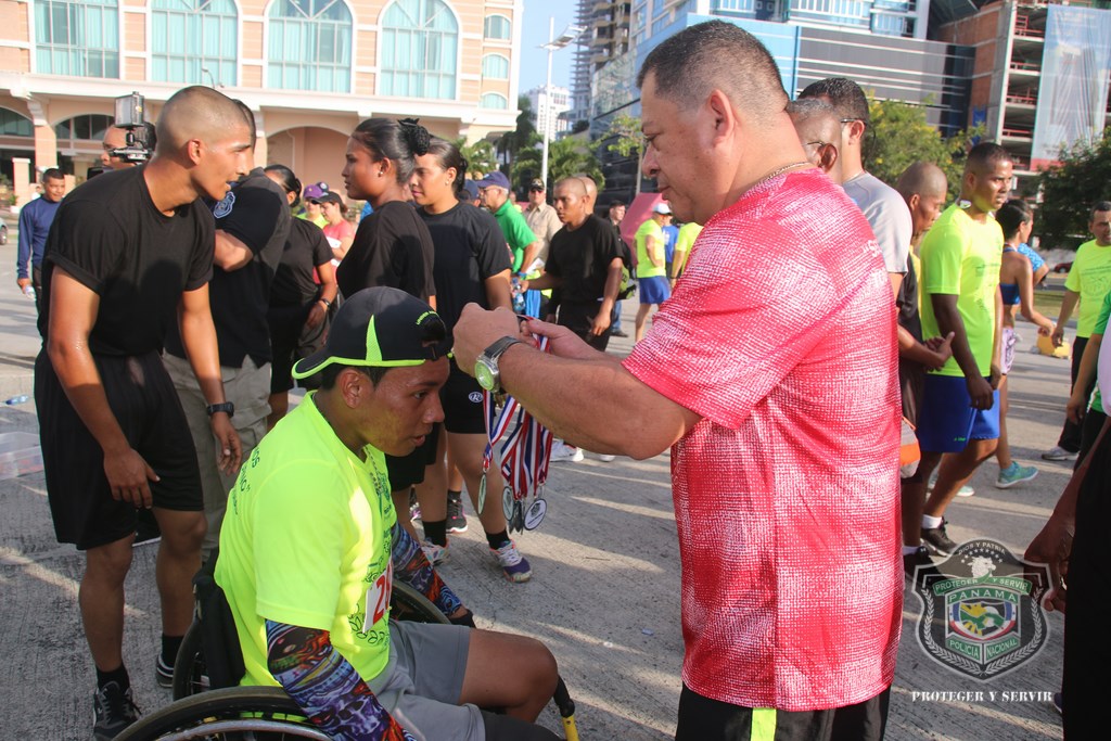 Más de 800 corredores se hicieron presentes a tempranas horas de este domingo 13 de diciembre en la Cinta Costera, para participar de la vigésima cuarta versión de la carrera Subteniente Post Morten Rolando Martínez, que tradicionalmente realiza la Policía Nacional (PN) a fin de año. “Nos sentimos muy contentos al observar que cada año se suman más personas a esta carrera, en la que rendimos honor a la memoria de este uniformado que ofrendó su vida en cumplimiento de su deber, además de promover el espíritu deportivo, la salud física y el compañerismo”, dijo el Director General de la Policía, Omar Ariel Pinzón Marín. La gran concurrencia de jóvenes y adultos de más de 40 años fue notoria en esta competencia, en la que demostraron sus óptimas condiciones físicas en los recorridos de 5 y 10 kilómetros, tanto masculino como femenino. Destacada fue la participación de los deportistas, pertenecientes a diversos equipos de atletas sobre sillas de ruedas, entre estos, Campeones de Acero, siendo un ejemplo, que la discapacidad no es impedimento para trazarse metas y lograr triunfos. Los niños y niñas de diversas edades no se quedaron atrás, y también corrieron 1 kilómetro, dejando ver su potencial como futuros corredores. Al evento acudieron otras instituciones de seguridad del Estado como el Servicio Nacional de Fronteras (SENAFRONT), Servicio Nacional Aeronaval (SENAN), y el Servicio de Protección Institucional (SPI). El subcomisionado y jefe del Departamento de Deportes de la PN, Julio Aizprua, dijo que este evento deportivo fue de inscripción gratuita a miembros de la institución como a la comunidad en general, aficionados y profesionales. Todos los competidores y demás asistentes disfrutaron un rato ameno, amenizado por la Orquesta Mayor de la Policía Nacional. Al finalizar la actividad, los ganadores recibieron medallas de oro, plata y bronce correspondientes a los primeros lugares, siendo entregadas por miembros del Directorio Nacional de la entidad y por los propios hijos del desaparecido, subteniente Rolando Martínez. Adicional, el jefe policial entregó medallas como reconocimiento especial a todos los competidores sobre sillas de ruedas. Por su parte, el Subdirector de Asuntos Penitenciarios, David Ramos Villa agradeció a todos los presentes por su participación, y a quienes hicieron posible su exitosa organización, sobre todo al Director Omar Pinzón, por innovar esta carrera de fin de año, que permite estrechar lazos de amistad entre compañeros y con la familia panameña. |