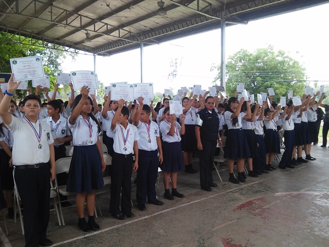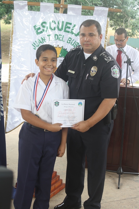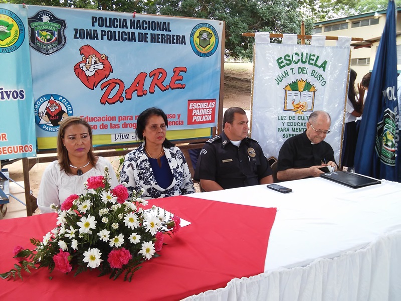 Unos 105 estudiantes de la Escuela Juan T. del Busto, recibieron de manos de los miembros de la Policía Nacional de Herrera, certificados y medallas de honor, del programa de Desarrollo Humano conocido como DARE. En el acto de graduación se dieron cita los comisionados Ismael Herrera, jefe de la zona de Policía de Herrera, funcionarios del Ministerio de Educación, docentes y padres de familia de ese plantel educativo. El comisionado Herrera, dijo estar muy contento con este programa que lleva adelante la Policía Nacional, una herramienta más para alejar a los jóvenes de las drogas y felicitó a todos los estudiantes graduando por haber recibido la enseñanza del Programa DARE. El acto concluyó con un mensaje de orientación a los estudiantes que recibieron el certificado del programa de resistencia a las drogas. |