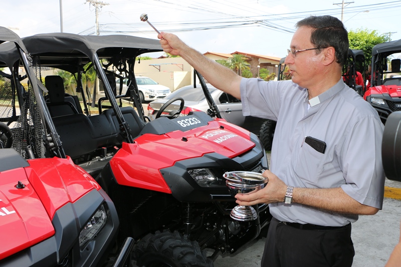 Con la asignación de 8 vehículos todo terreno, la Policía Nacional de Panamá dio inicio al desarrollo del programa de vigilancia denominado “La Policía de Contacto”, un proyecto innovador que se va a desarrollar inicialmente en los sectores de Brisas del Golf y Villa Lucre. El Comisionado Roberto Castillo Jefe de la 17ava. Zona Policial recibió de manos del Subdirector Penitenciario de la Policía Nacional de Panamá, David Ramos, las llaves de los nuevos vehículos que fueron comprados recientemente y asignados a la 2da. Región Policial de San Miguelito. “Se están siguiendo las instrucciones del Director Omar Pinzón para cumplir con las metas establecidas en las programaciones y proyectos policiales para brindarle a la comunidad un mejor servicio”, explicó el Subdirector Penitenciario David Ramos. Correspondió al Reverendo Padre Severo Samaniego de la Parroquia San Juan Apóstol Evangelista bendecir los nuevos vehículos todo terreno adquiridos por la Policía Nacional. Por su parte el Comisionado Alonso Vega Pino agradeció el apoyo de sus superiores, en el trabajo de combatir la delincuencia así como la presencia de los representantes de la Junta Comunal y las entidades e instituciones comerciales y bancarias del sector. “A estos vehículos se les van a integrar cámaras internas y sistemas GPS. Se va a innovar también la vigilancia del sector con drones y plataformas tecnológicas para mejorar los tiempos de respuestas”, explicó Vega Pino. “Es un proyecto de metodología científica con muchas mediciones que integran el Policía del Cuadrante, el Policía Puerta a Puerta y las llamadas geo referenciales con un software que va a informar al radio operador cual es el recurso policial más cercano que medirá también el tiempo de reacción y respuesta”, concluyó Vega Pino. |